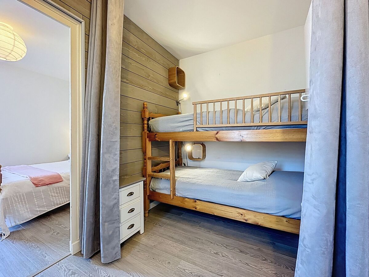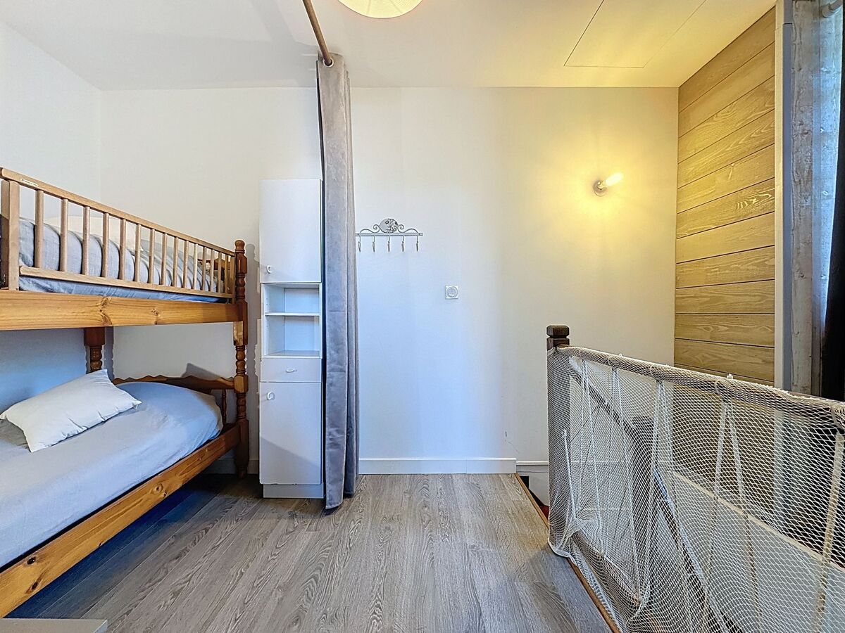 À l'étage supérieur: galerie avec 1 x 2 lits superposés (90 cm, longueur 190 cm).