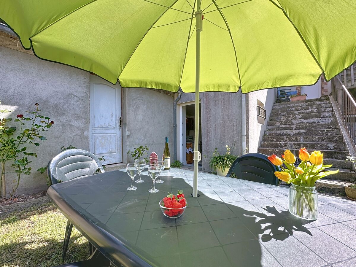 Terrasse, situation ouest, petit jardinet, situation ouest.