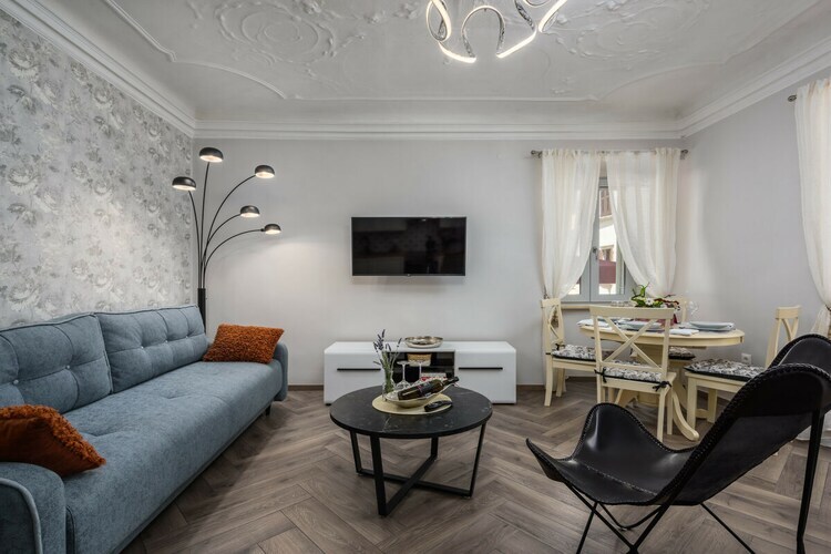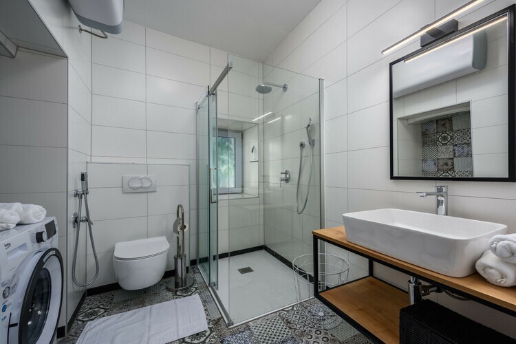 , Salle de séjour(Canapé-lit simple, TV, radio), cuisine(bouilloire, grille-pain, cafetière/percolateur, micro ondes, lave-vaisselle , réfrigérateur, congélateur, Robot de cuisine), chambre(lit double), chambre(lit double), salle de bains(douche), sèche-linge, lave-linge , parking, fer à repasser