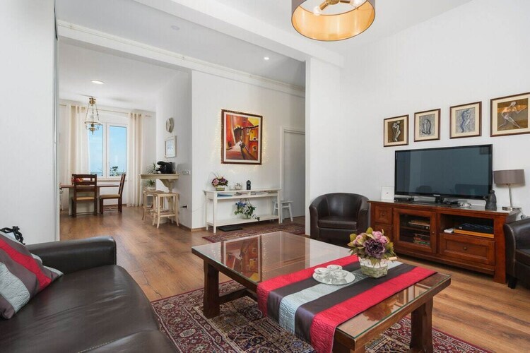 L'appartement dispose d'un spacieux séjour avec un canapé-lit double confortable et un lit king-size, offrant un espace de couchage généreux pour jusqu'à quatre personnes. La cuisine moderne est entièrement équipée avec tous les appareils électroménagers nécessaires, dont un réfrigérateur, un congélateur, un four, un micro-ondes, un lave-vaisselle et une cafetière, vous permettant de préparer facilement de délicieux repas pendant votre séjour.