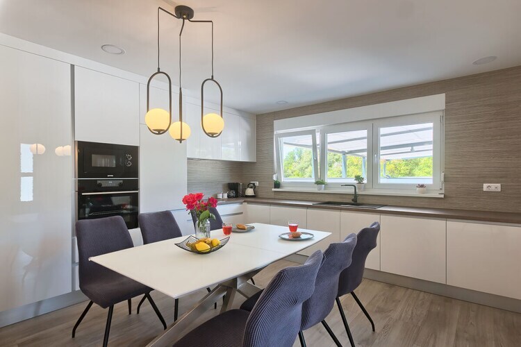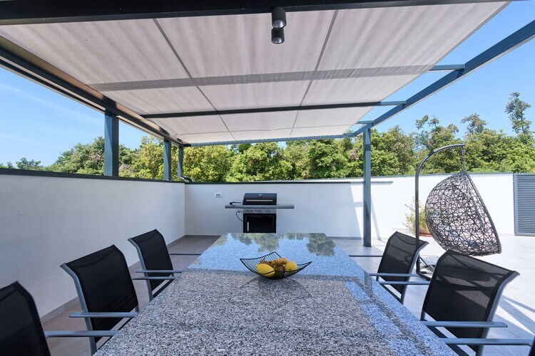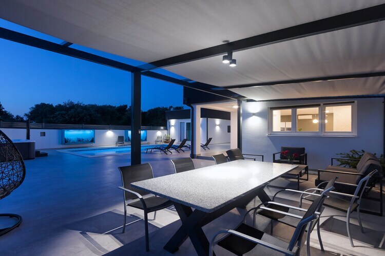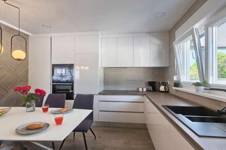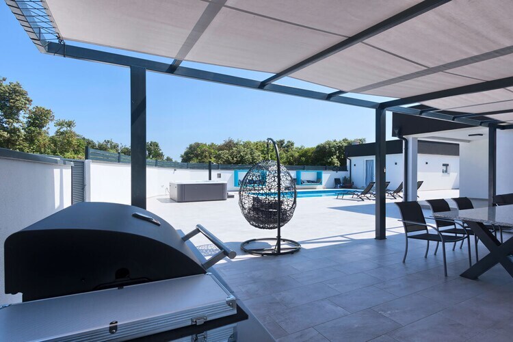 Villa moderne située au calme, au cœur d'une végétation méditerranéenne. Elle dispose de deux chambres avec lits extra-larges, chacune dotée d'une salle de bain. La cuisine, la salle à manger et le salon sont communicants et donnent accès à la terrasse et à la piscine. Cette dernière est équipée d'une grande table sous le toit et d'un barbecue.