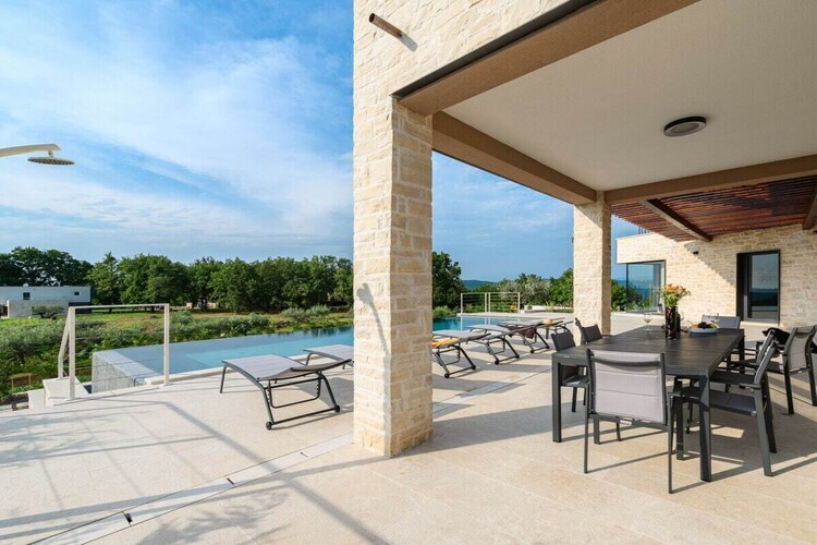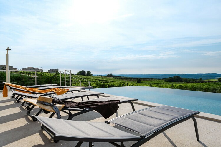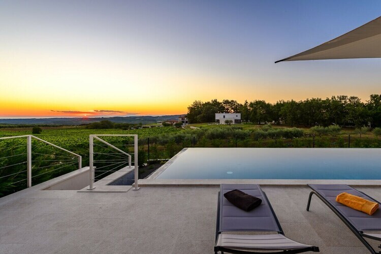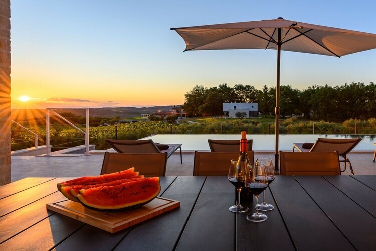 Nichée au cœur des collines verdoyantes de Vižinada, surplombant les vignobles et offrant une magnifique vue sur la mer, se trouve la luxueuse Villa Faloniga. Elle doit son nom à une source naturelle voisine, source de vie depuis l'Antiquité.
