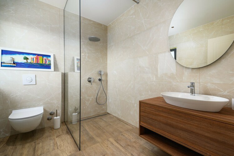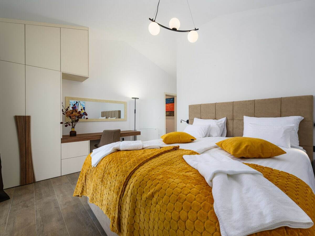 Cette magnifique maison de vacances de luxe près de Bajkini dispose de quatre élégantes chambres doubles, chacune avec sa propre salle de bain, d'une cuisine spacieuse et d'un coin repas. Le salon chaleureux, comme toute la villa, s'inspire des couleurs terreuses et de la beauté de la nature, créant une atmosphère relaxante unique, en harmonie avec la nature.