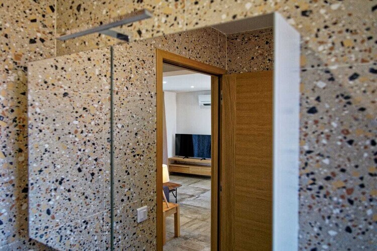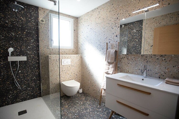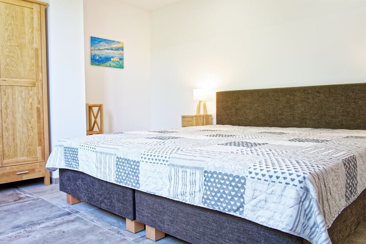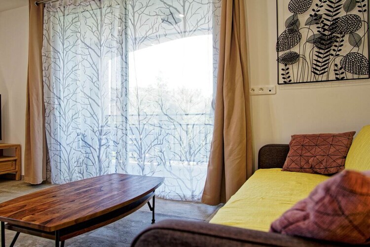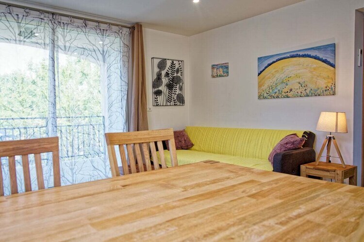 Appartement de 56 m² avec terrasse couverte de 7 m² au 1er étage et jardin partagé, pouvant accueillir jusqu'à 4 personnes. Il comprend un salon-salle à manger, une cuisine entièrement équipée, deux chambres séparées et une salle de bain avec douche/WC.