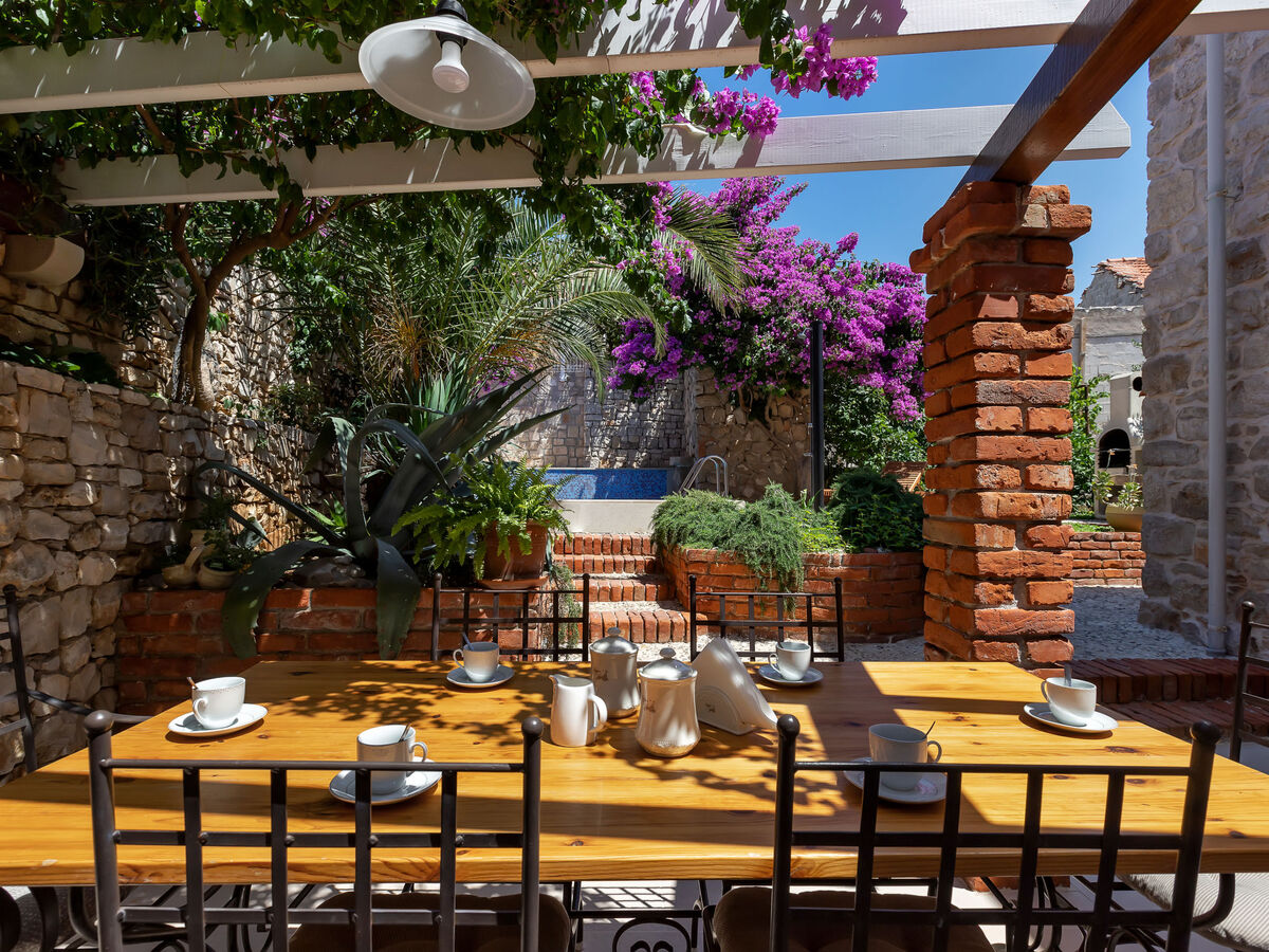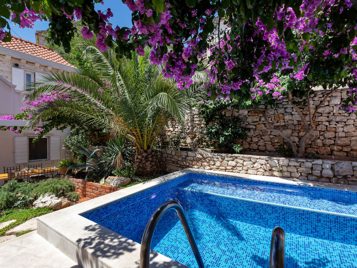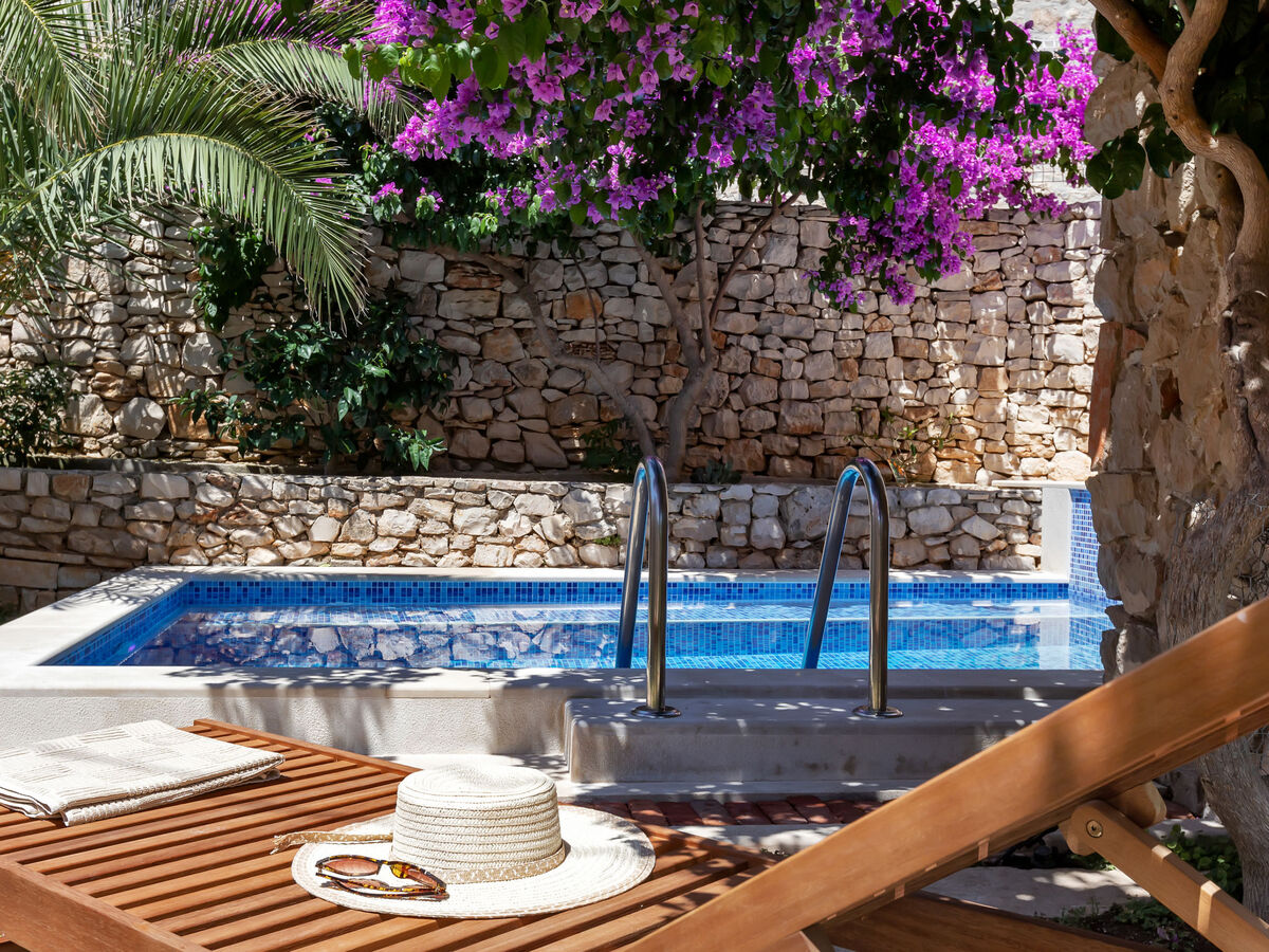 A usage privé: terrain 120 m2 (clôturé), jardin sur plusieurs niveaux entretenu, piscine rectangulaire, chauffée (4 x 3 m, 14 m2, profondeur 150 cm, disponibilité saisonnière: 10.Avr.