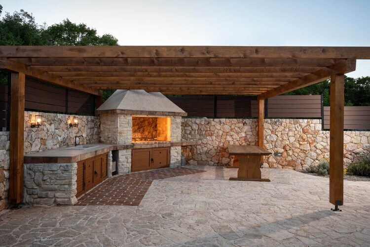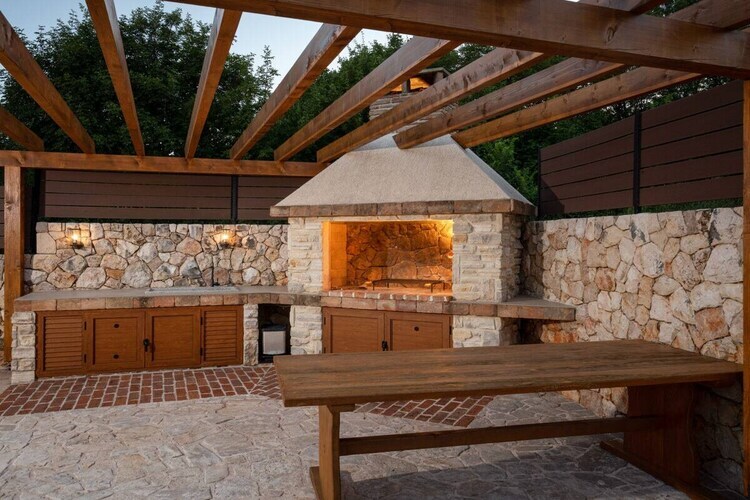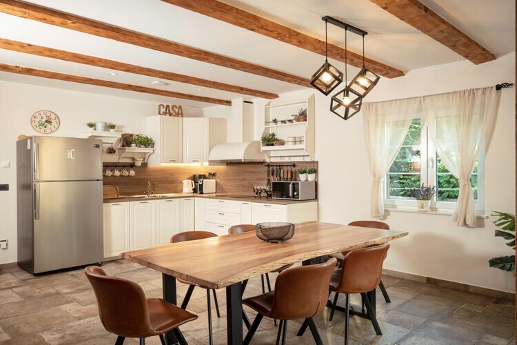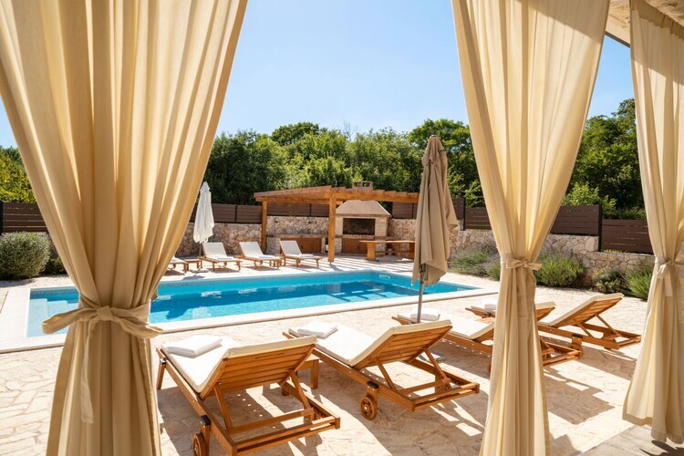 La Villa LuLu, située sur l'île pittoresque de Krk, est le refuge idéal pour vos vacances. Entourée d'une nature magnifique, elle dispose d'une petite oliveraie, d'une aire de jeux pour enfants, d'un foyer extérieur et d'une piscine chauffée avec de confortables chaises longues. À l'intérieur, la villa offre quatre chambres spacieuses, chacune avec salle de bain privative, climatisation et télévision. Le rez-de-chaussée comprend une cuisine moderne, un coin repas et un salon climatisés et équipés d'une télévision, ainsi que des toilettes séparées pour plus de confort. À l'étage, trois chambres supplémentaires et une spacieuse terrasse offrent une vue imprenable sur la piscine et la verdure environnante.