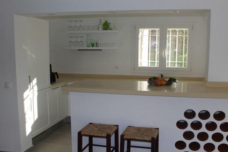 La villa comprend 3 chambres, 2 salles de bains et un grand salon/salle à manger avec cuisine ouverte et bar, ainsi qu'un accès direct à la terrasse. Un jardin avec un grand solarium, un espace barbecue et une piscine offrent le cadre idéal pour des vacances reposantes.