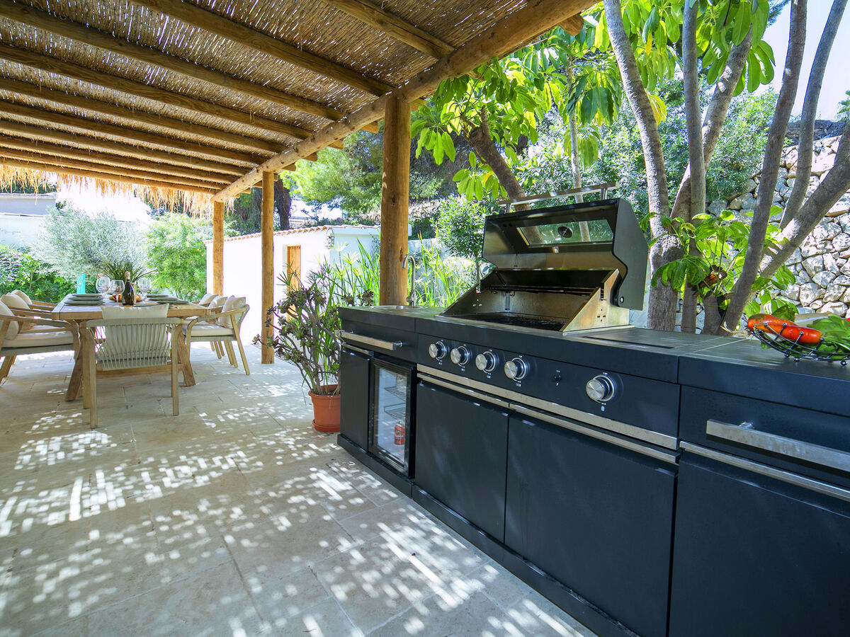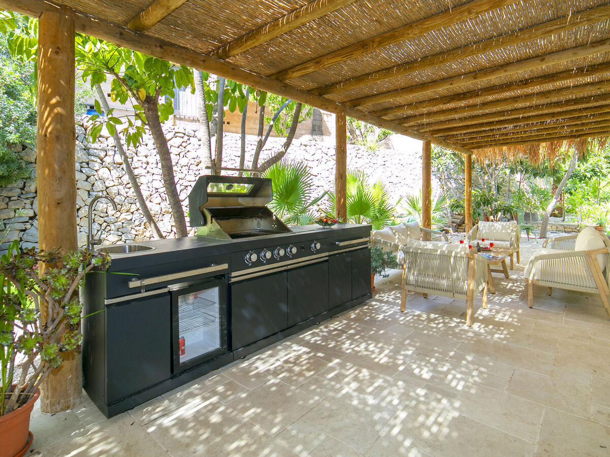 Meubles de terrasse, barbecue, place pour s'asseoir.