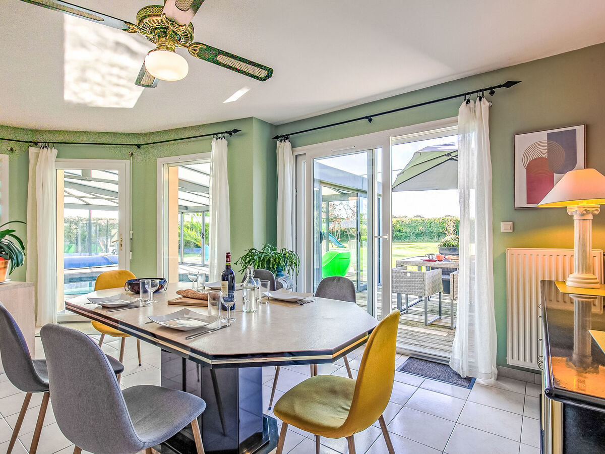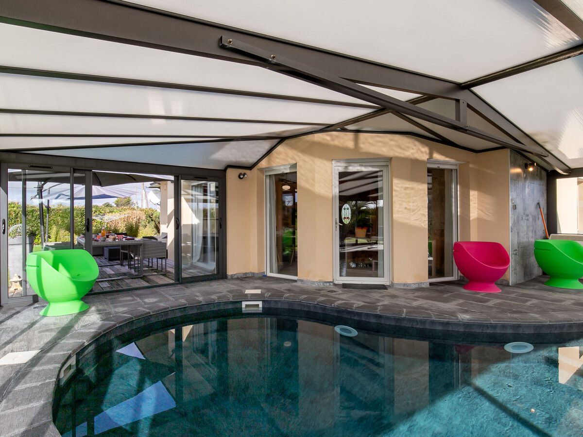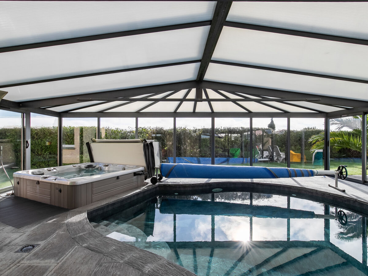 Bain à remous , pool house avec douche, espace de jeux pour les enfants (toboggan, balançoire).