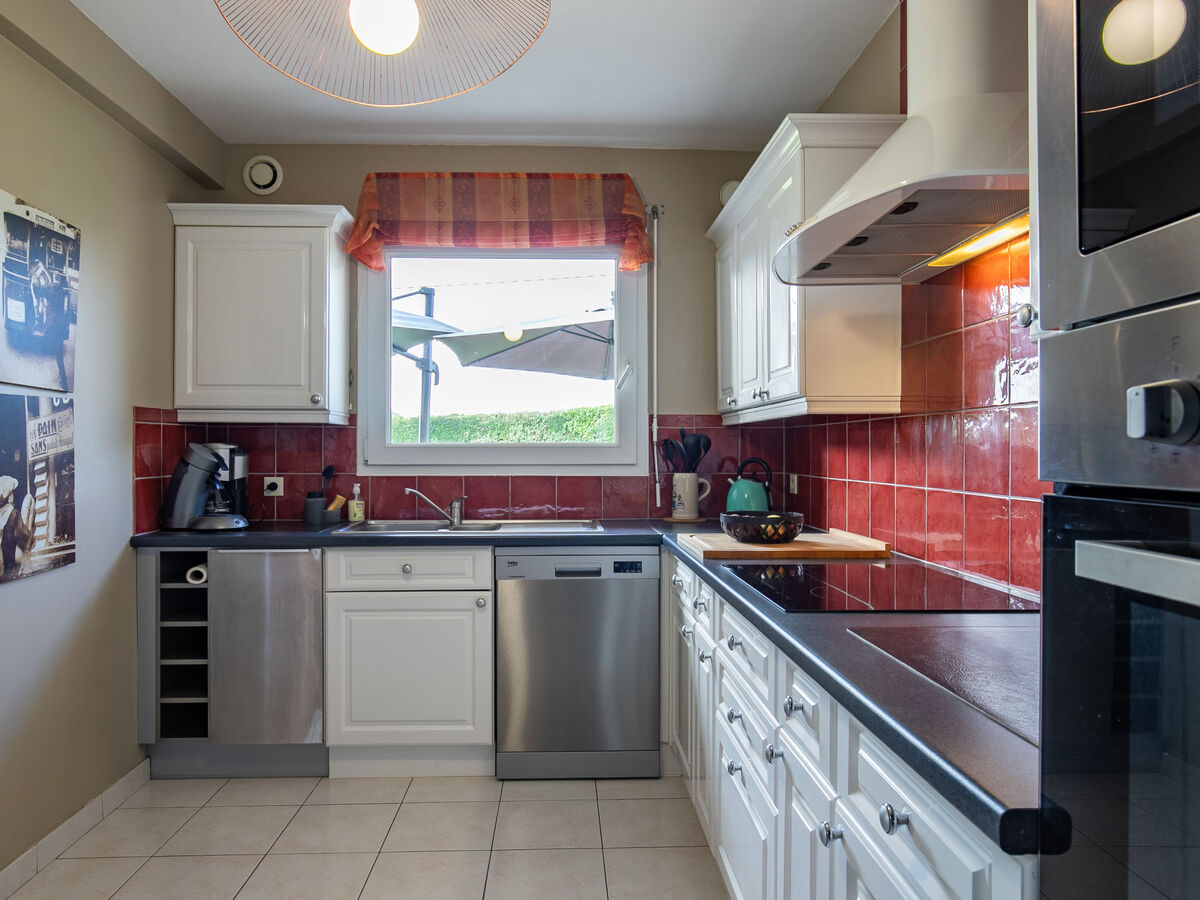 Cuisine ouverte (four, lave-vaisselle, 4 feux, grille-pain, bouilloire électrique, micro-ondes, congélateur, cafetière électrique).