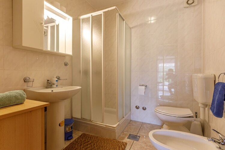 Vous pourrez profiter de la vue sur la mer depuis le balcon de la maison de vacances, ainsi que de la piscine privée avec chaises longues et douche extérieure.