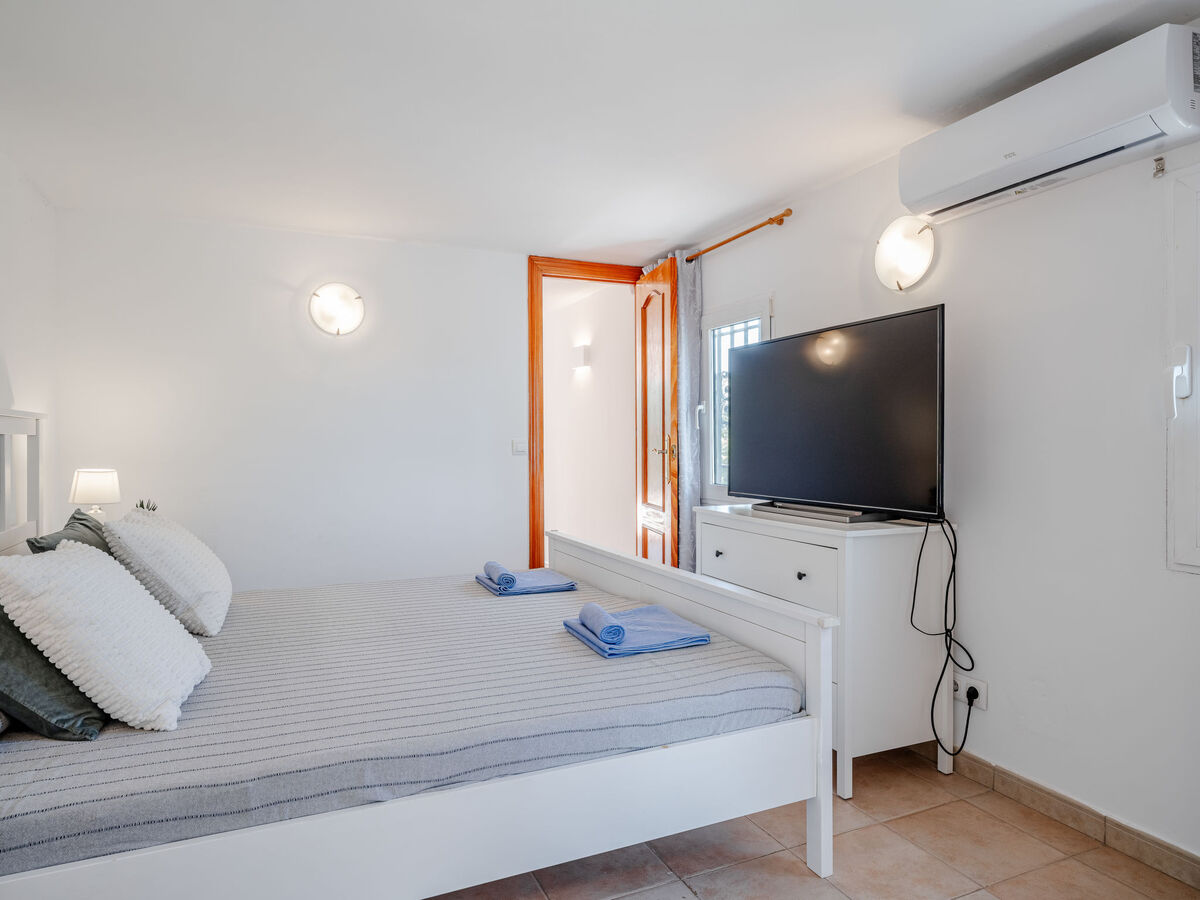 À l'étage inférieur: (escalier extérieur) 1 chambre avec 1 grand-lit (180 cm, longueur 200 cm), douche/WC, TV (satellite), air-conditionné et chauffage à air chaud.