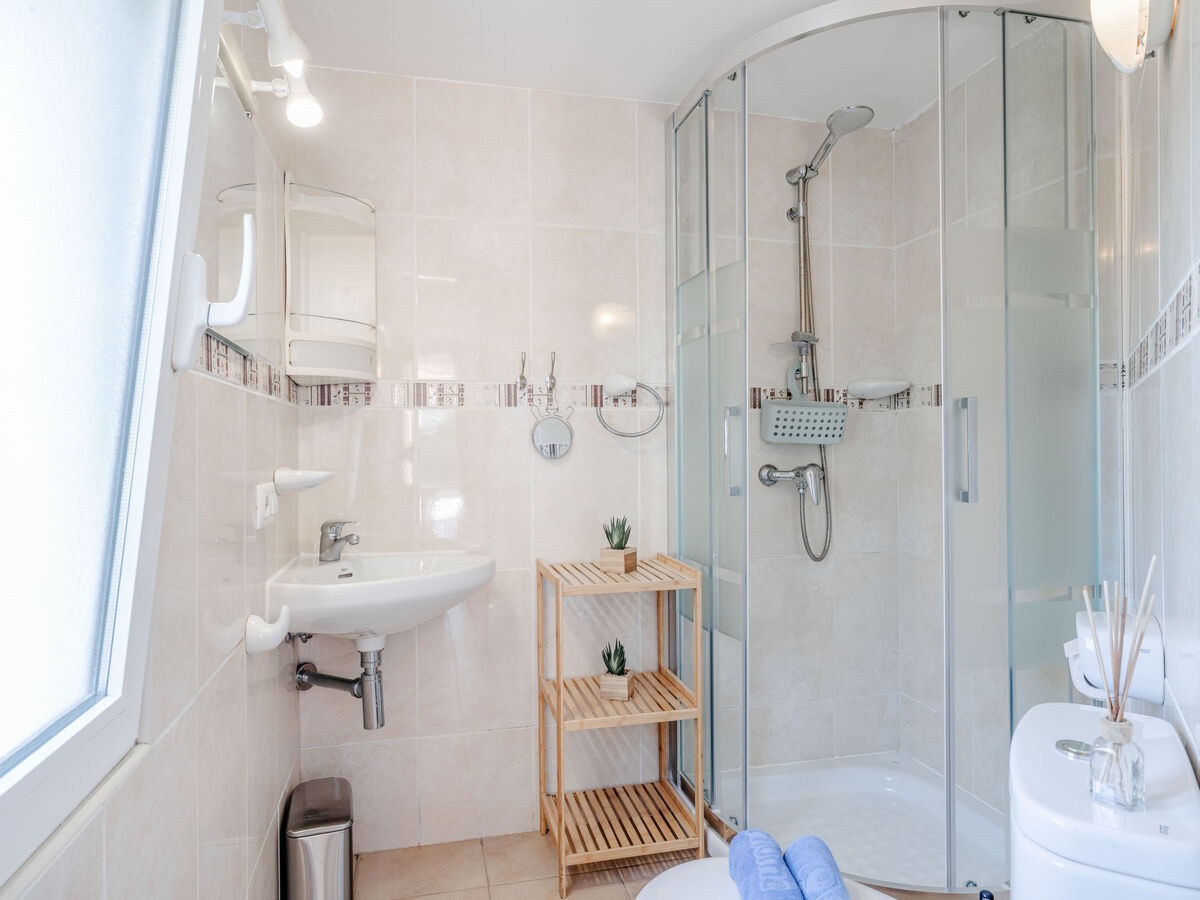 Douche extérieure, pergola, meubles de jardin, barbecue, espace barbecue, place de parking sur le terrain.