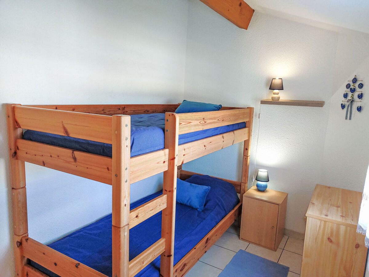 À l'étage supérieur: 1 chambre avec 1 grand-lit (140 cm).