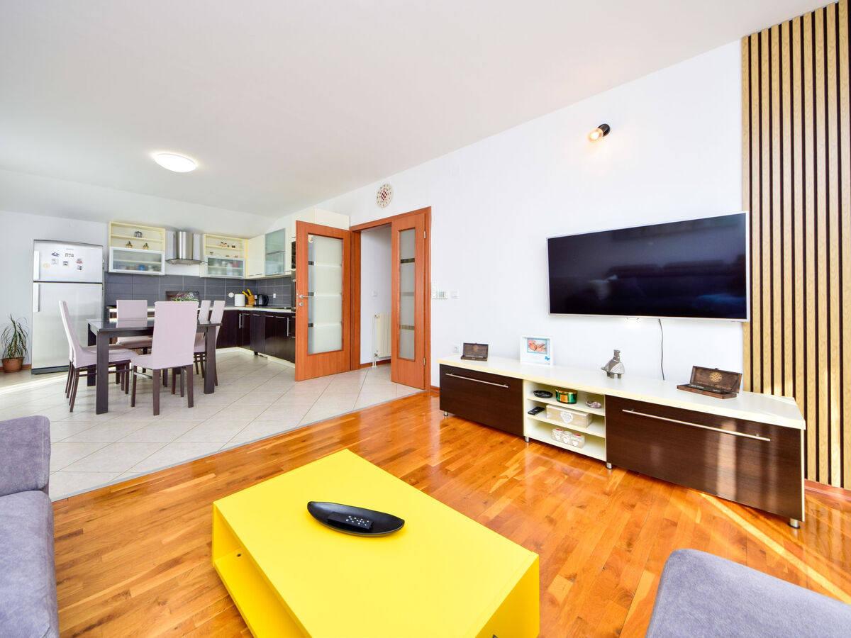 Séjour/salle à manger avec TV (satellite) et air-conditionné.
