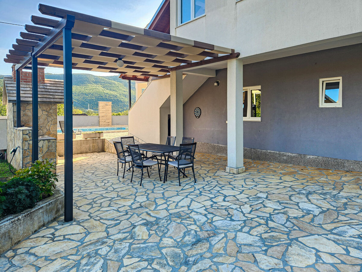 A usage privé: terrain 870 m2 (clôturé), piscine rectangulaire (8 x 4 m, profondeur 150 cm, disponibilité saisonnière: 01.Jun.