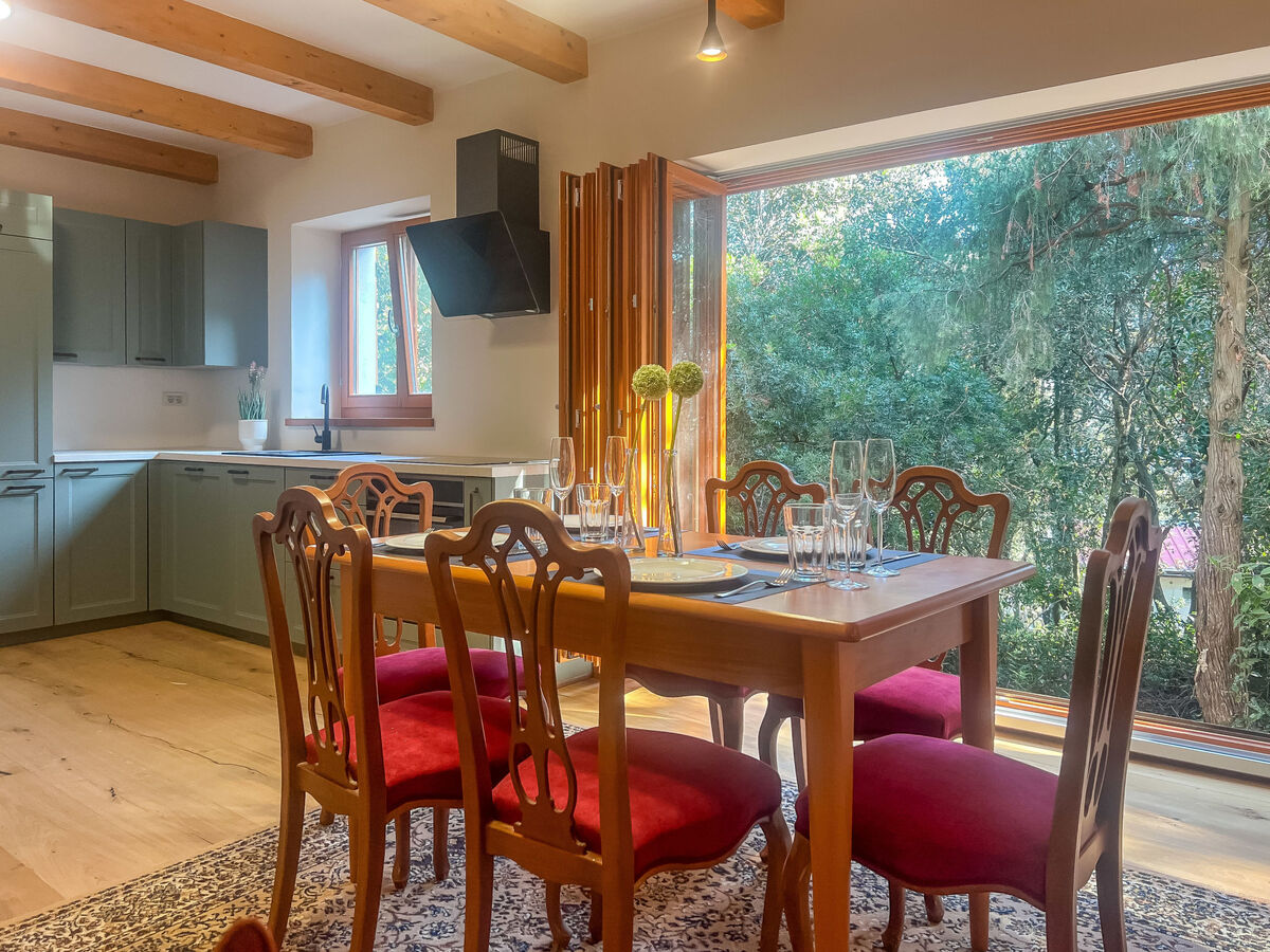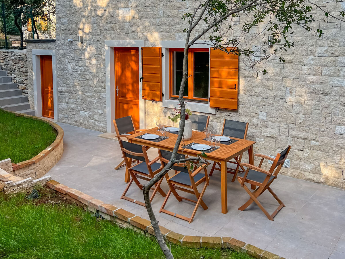 Une belle terrasse faite de chêne de bois avec 5 chaises permet de prendre du bon temps et de respirer l’air frais tout en écoutant les chants d’oiseaux. La terrasse se prolonge par un beau jardin parsemé d’arbres et de plantes. Une place de parking est également mise à disposition près de la maison pour garer un véhicule en toute sécurité.