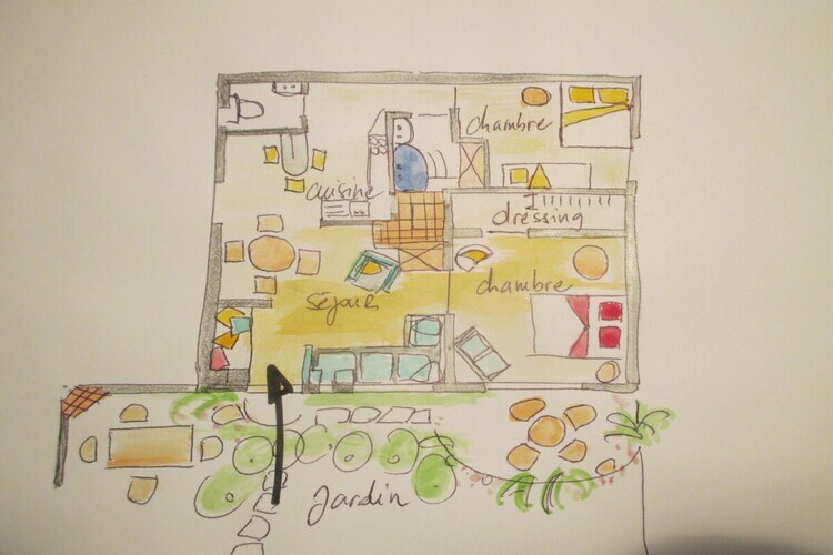 La maison de vacances donne sur le jardin, agrémenté de quelques terrasses romantiques et naturelles. Un parking est disponible au bout du petit chemin menant à la clôture du jardin. Un foyer extérieur est à votre disposition pour un barbecue ou un feu de cheminée. Tout près de Colmar, elle reste néanmoins très calme. La maison comprend deux chambres, l'une avec un lit double et l'autre avec un lit simple. Une cuisine, une salle de bain, des toilettes séparées et un séjour lumineux sont également à votre disposition.