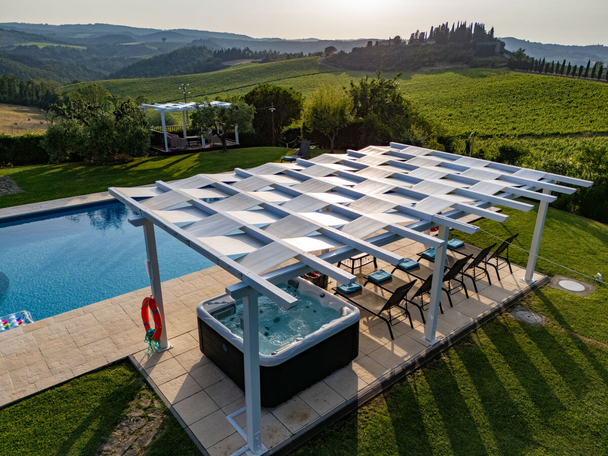 À 7 km du centre de San Gimignano, à 52 km du centre de Siena, à 58 km du centre de Firenze, situation tranquille, ensoleillée.