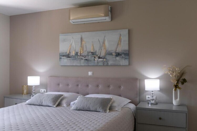 This villa features a private, furnished terrace overlooking the sea, making it an ideal spot for a relaxing getaway with family or friends. It features an air-conditioning unit as well as a flat-screen TV.