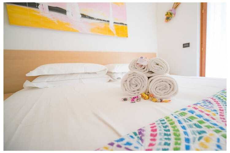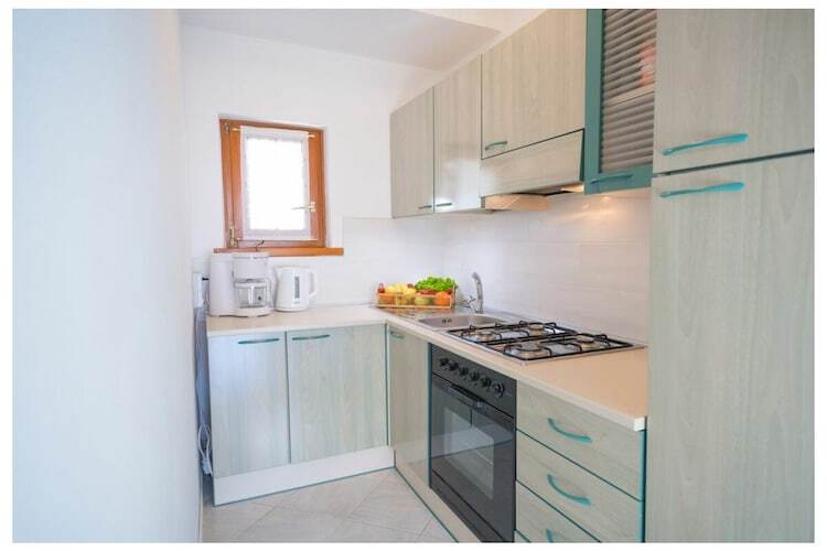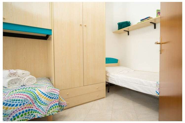 L'appartement peut accueillir jusqu'à 5 personnes et comprend une chambre double, une chambre avec 3 lits simples, une salle de bain, une cuisine, un salon avec canapé, une piscine et le Wi-Fi.