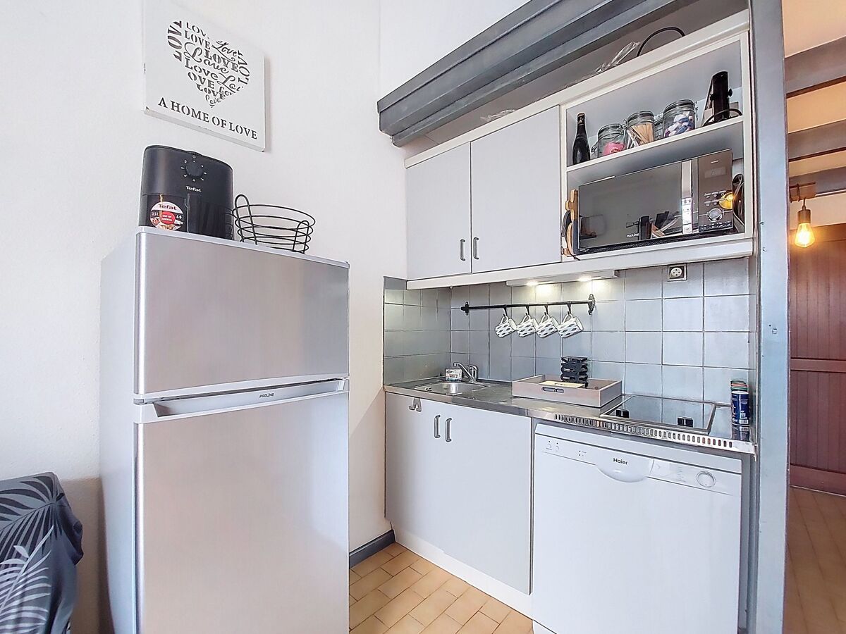Coin cuisine (mini-four, four, lave-vaisselle, 2 plaques à induction, grille-pain, bouilloire électrique, micro-ondes, cafetière électrique).