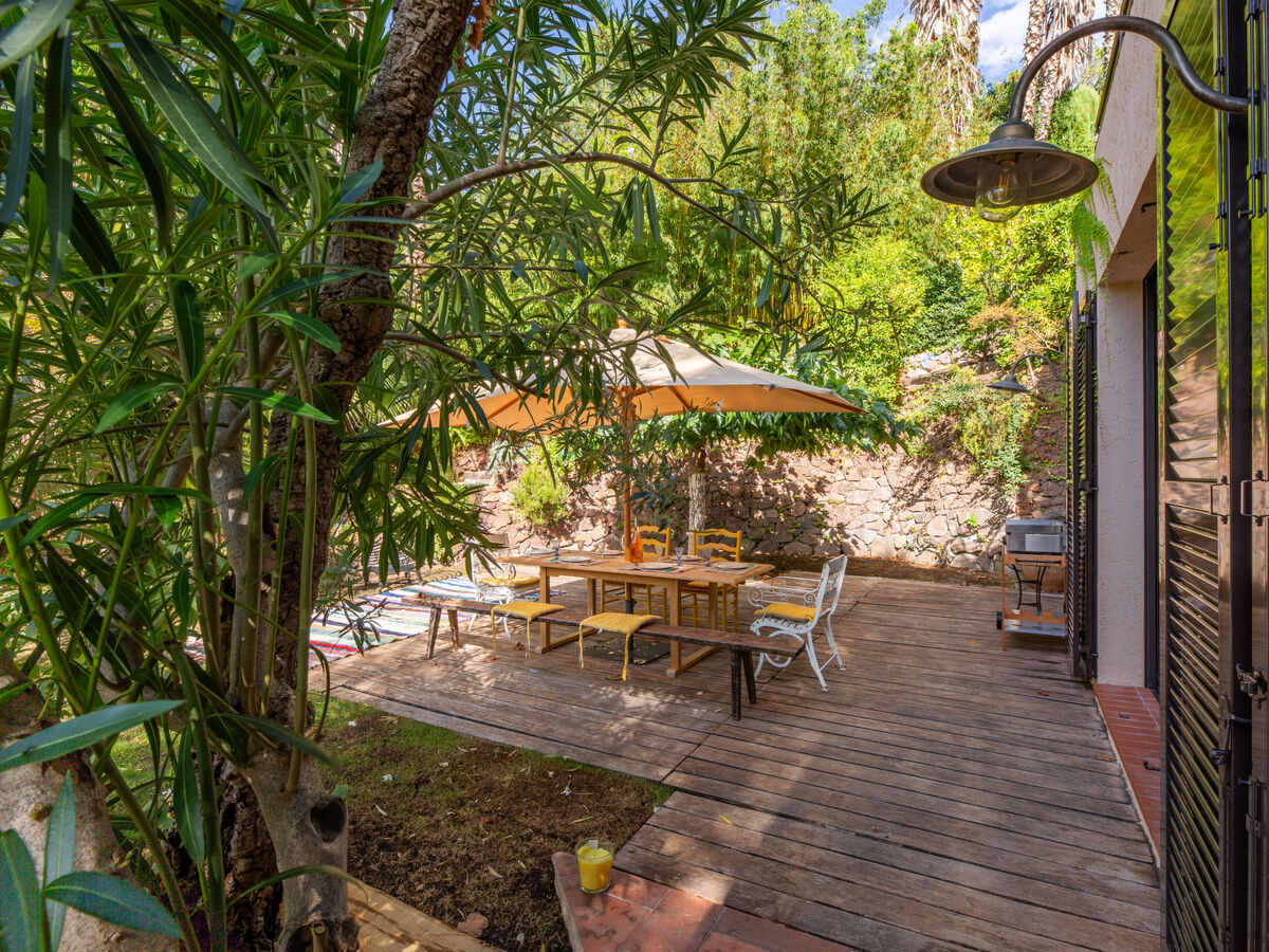 Meubles de terrasse, barbecue électrique, chaises longues (4).