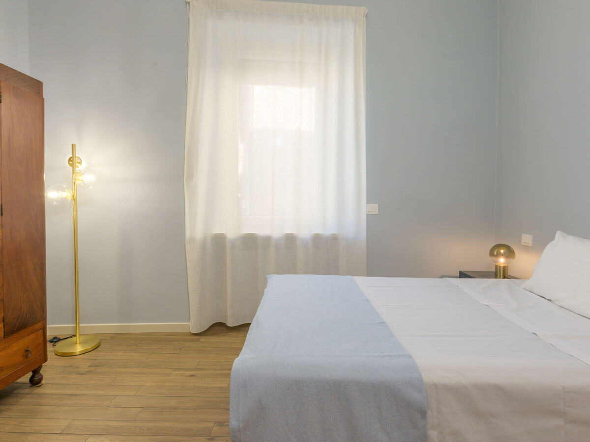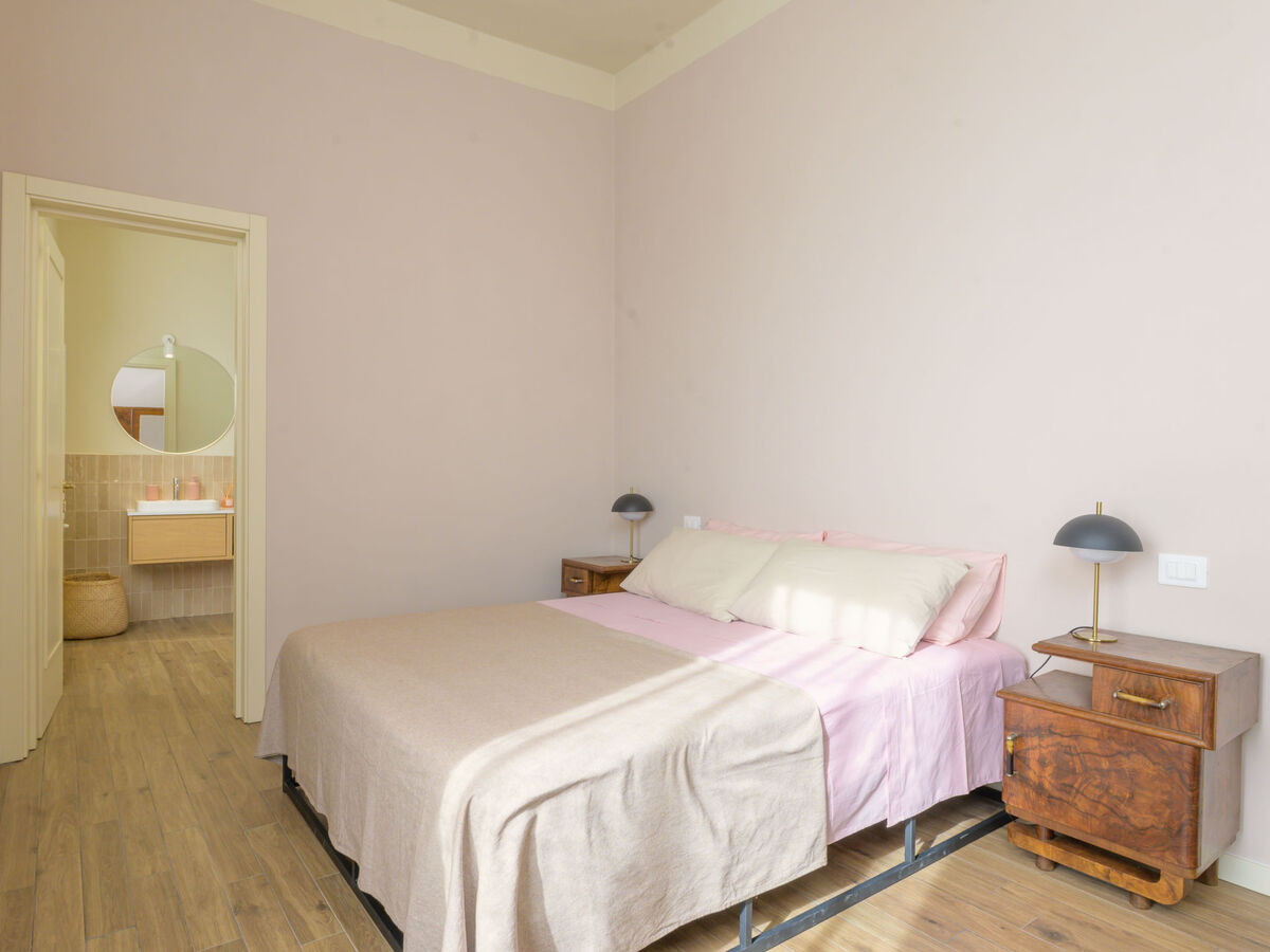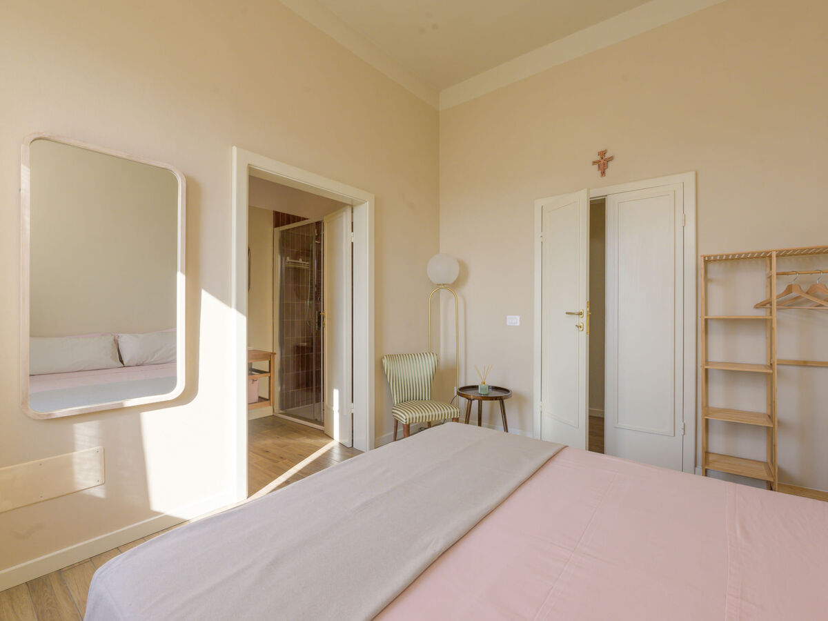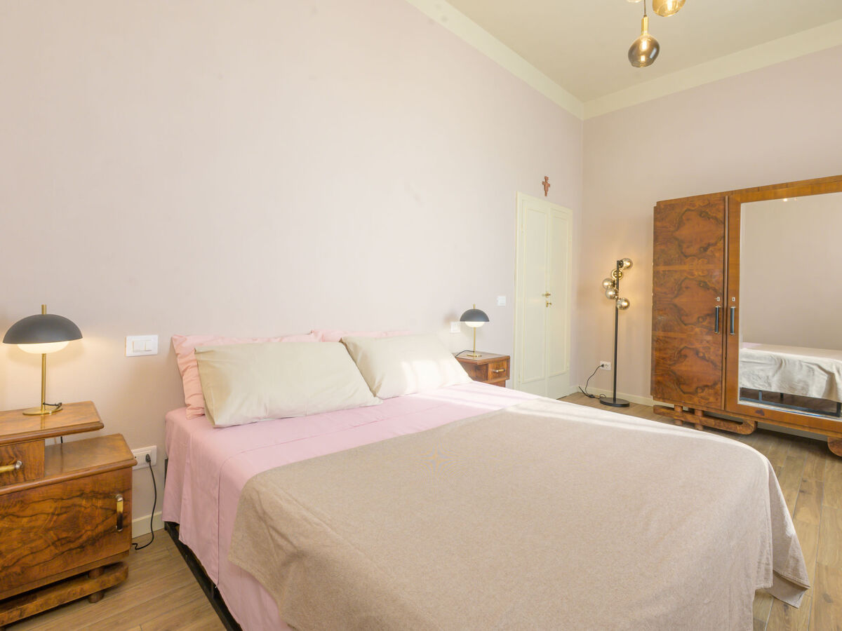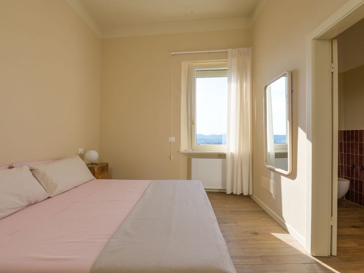 1 chambre avec 1 grand-lit (140 cm), douche/bidet/WC.