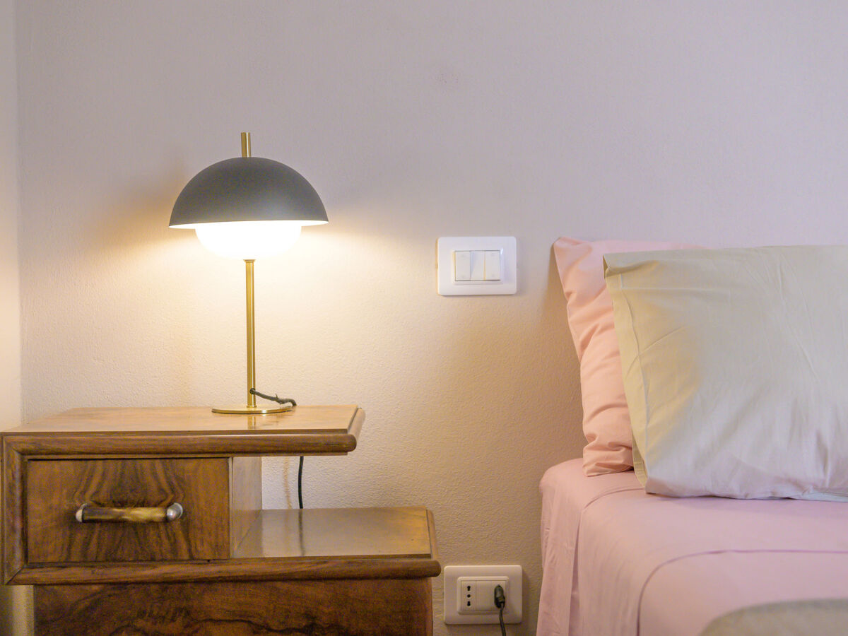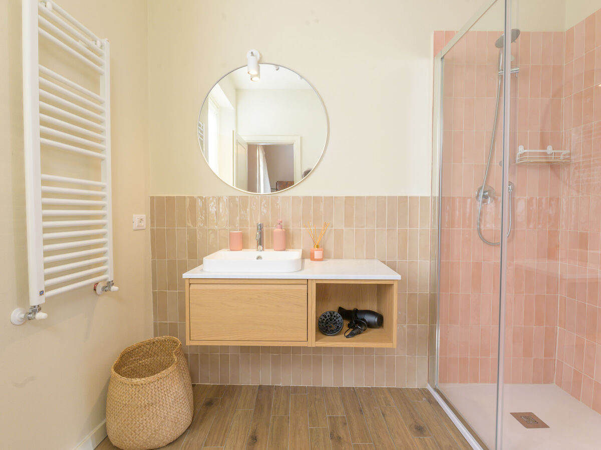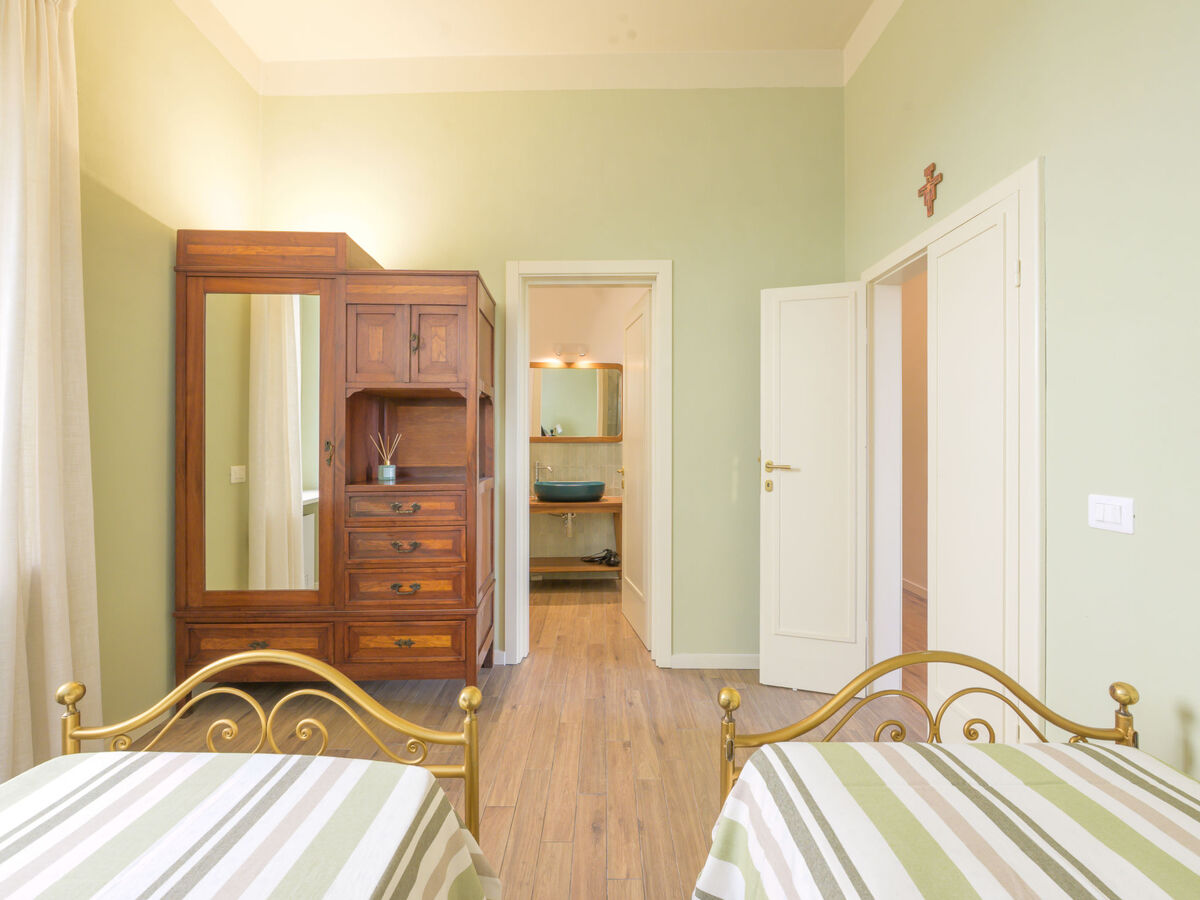 1 chambre avec 2 lits (80 cm), douche/bidet/WC.