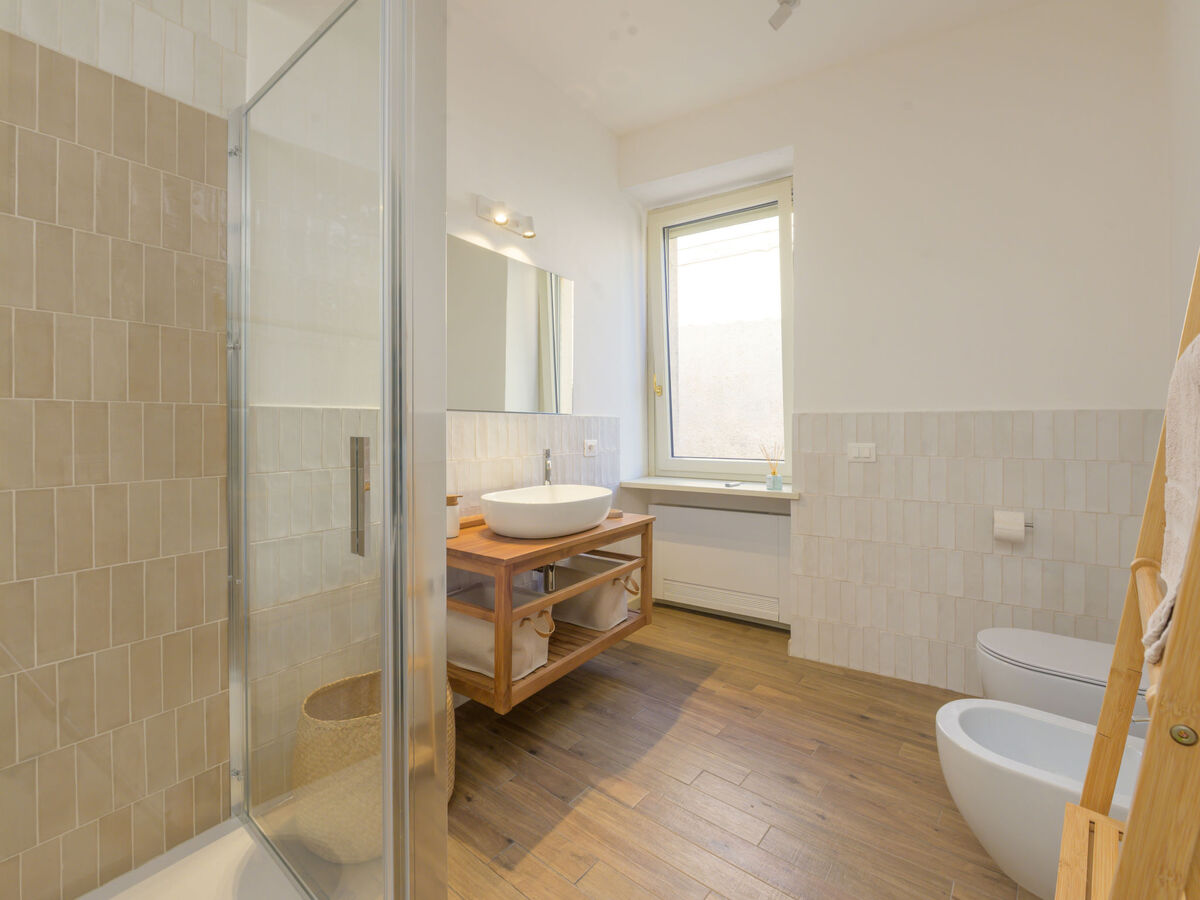 Spacieux et clair, aménagement moderne et de bon goût: 3 chambres doubles, chaque chambre avec: douche/bidet/WC.