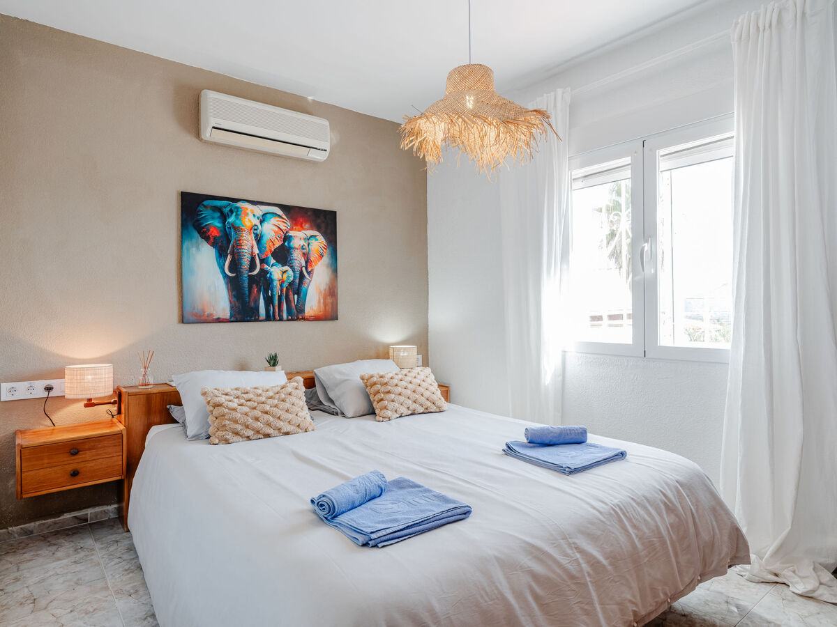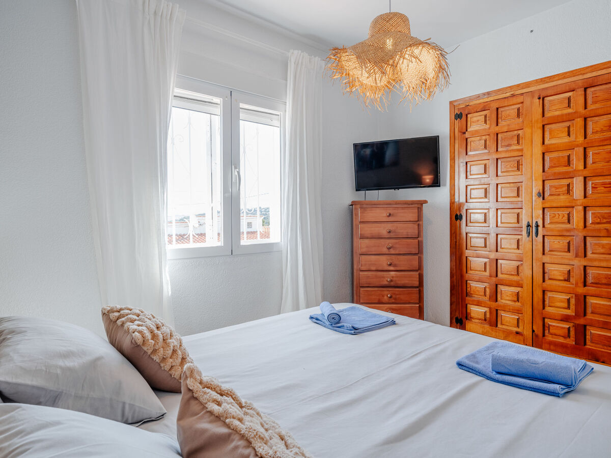 1 chambre avec 1 grand-lit (140 cm, longueur 190 cm), TV (satellite), air-conditionné et chauffage à air chaud.