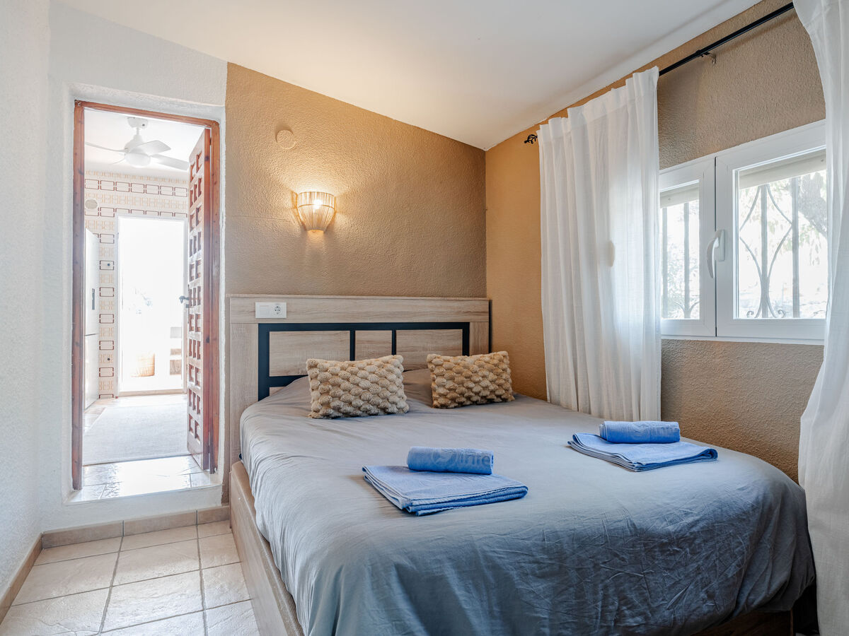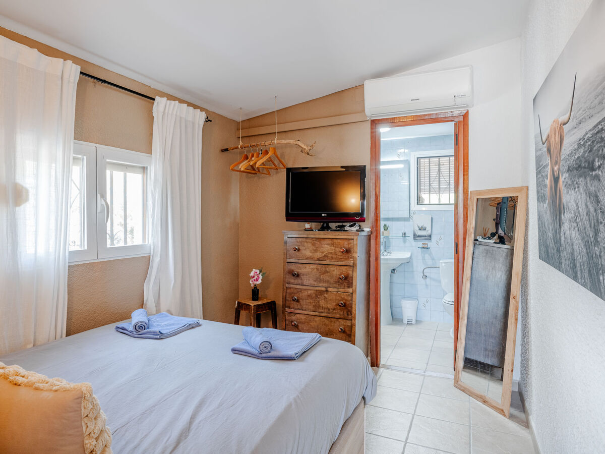 1 chambre avec 1 grand-lit (140 cm, longueur 190 cm), douche/WC, TV (satellite), air-conditionné et chauffage à air chaud.