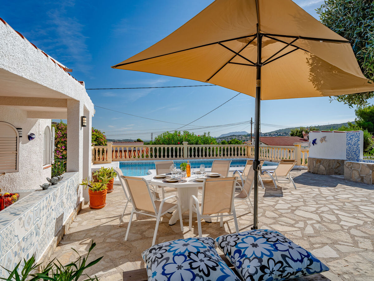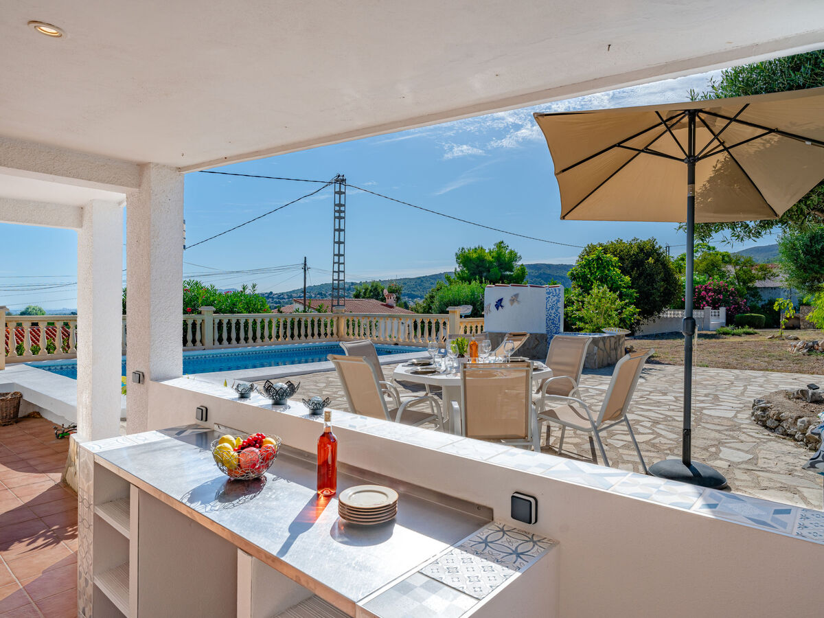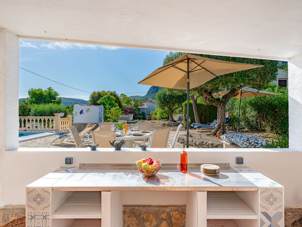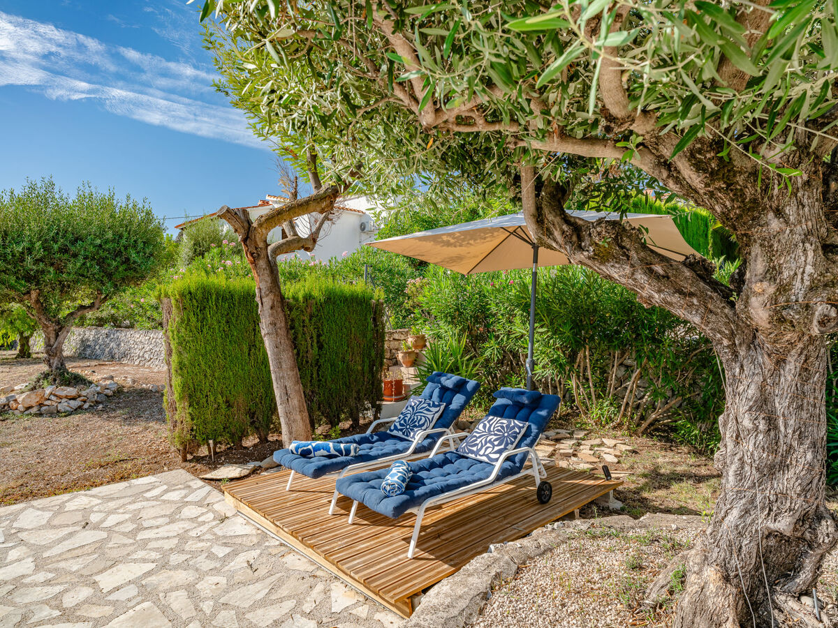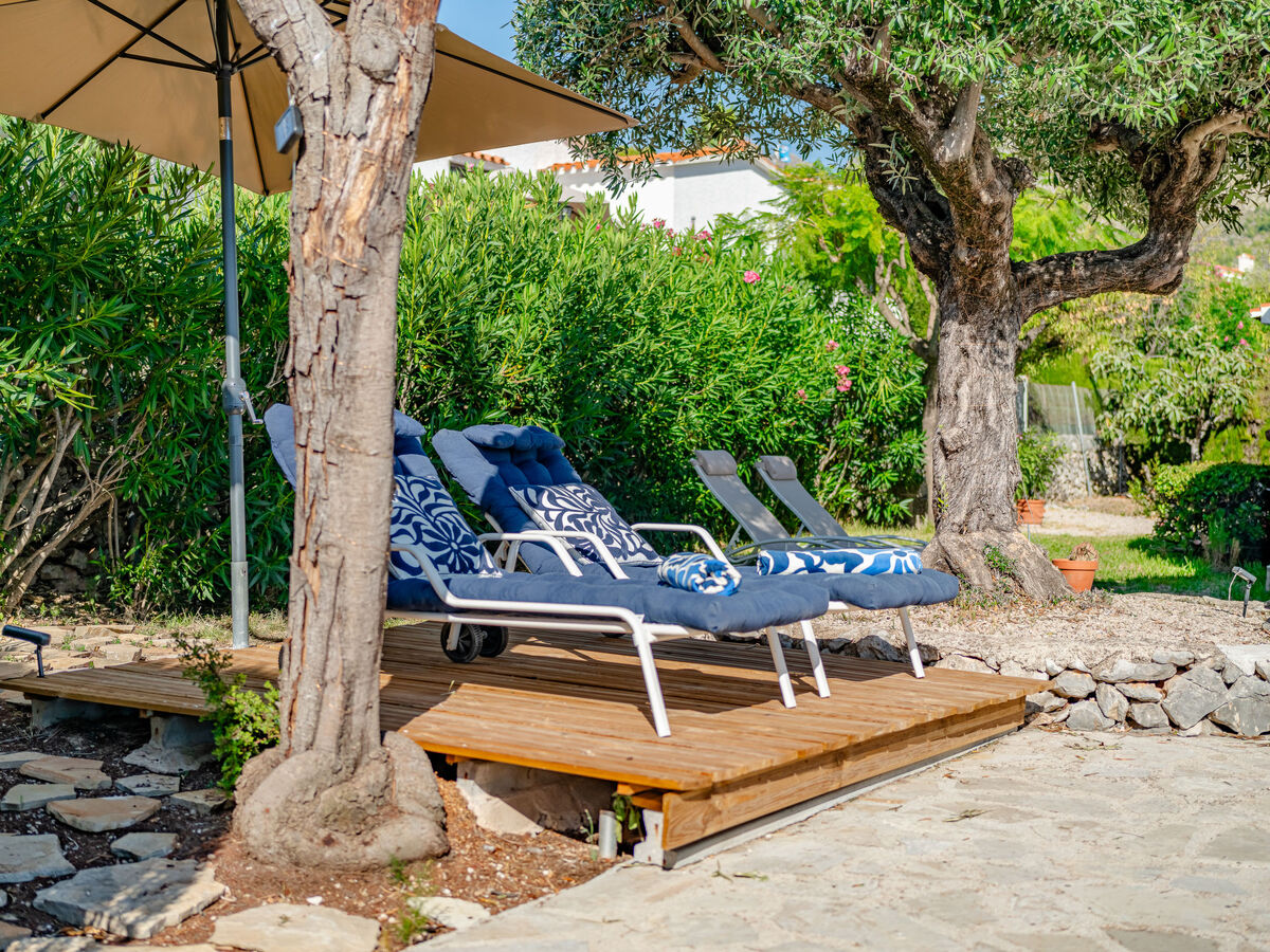 Douche extérieure, terrain de pétanque, pergola, meubles de jardin, place de parking (couvert) sur le terrain.