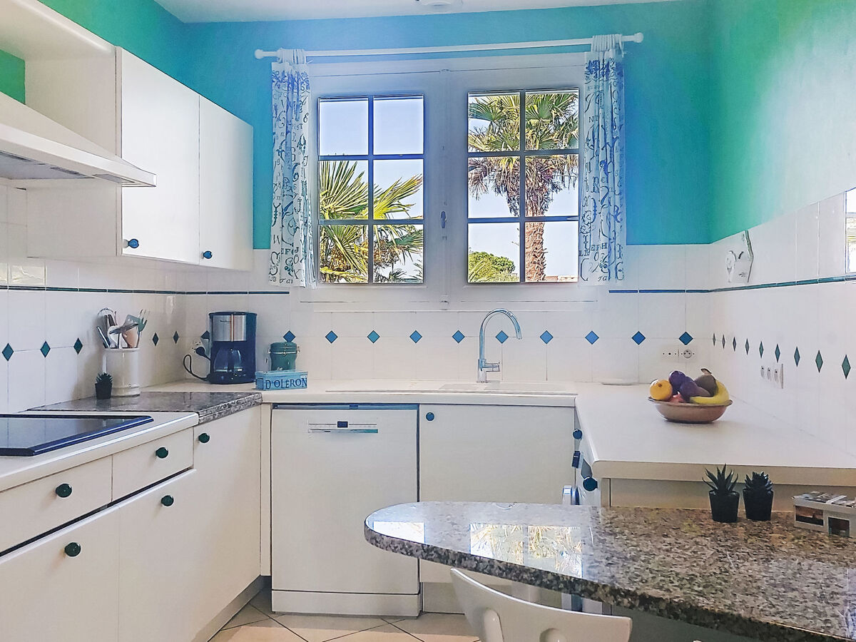 Cuisine (four, lave-vaisselle, 4 plaques vitrocéramiques, grille-pain, bouilloire électrique, micro-ondes, cafetière électrique).