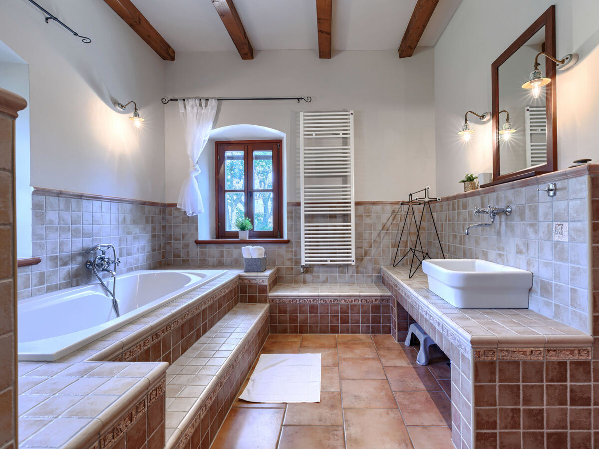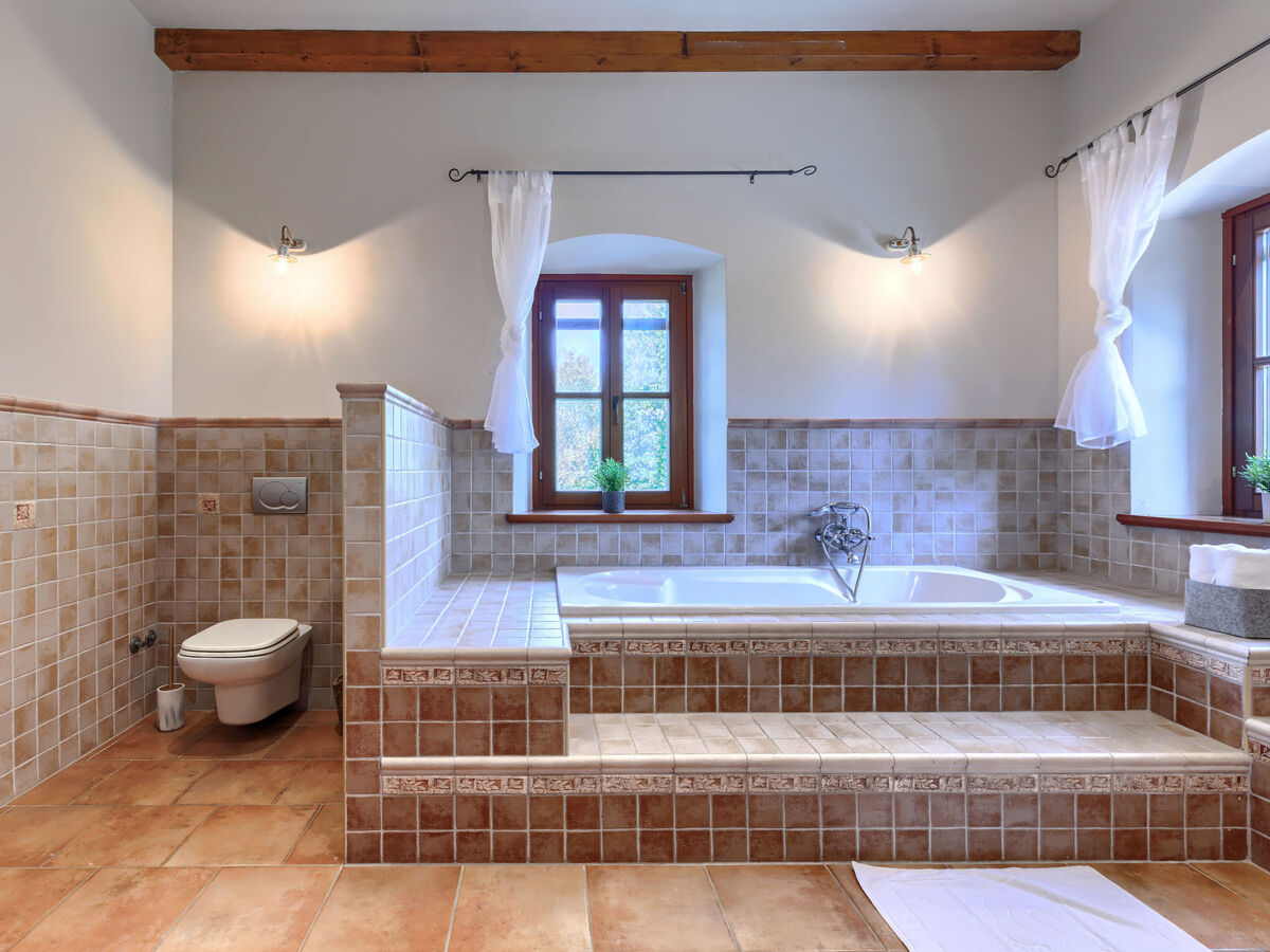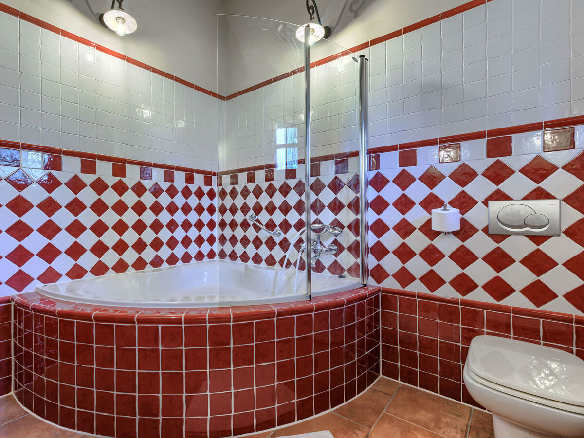 1 chambre avec 2 lits (90 cm, longueur 200 cm), bain/WC, avec baignoire d'angle et air-conditionné.