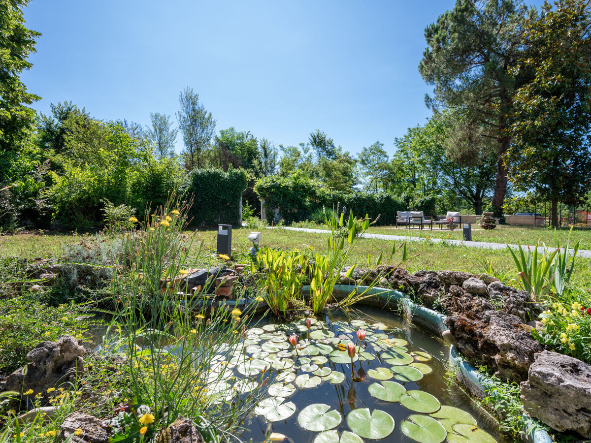 A usage privé: grand jardin 5'000 m2 (clôturé) avec fleurs et arbres, étang naturel.