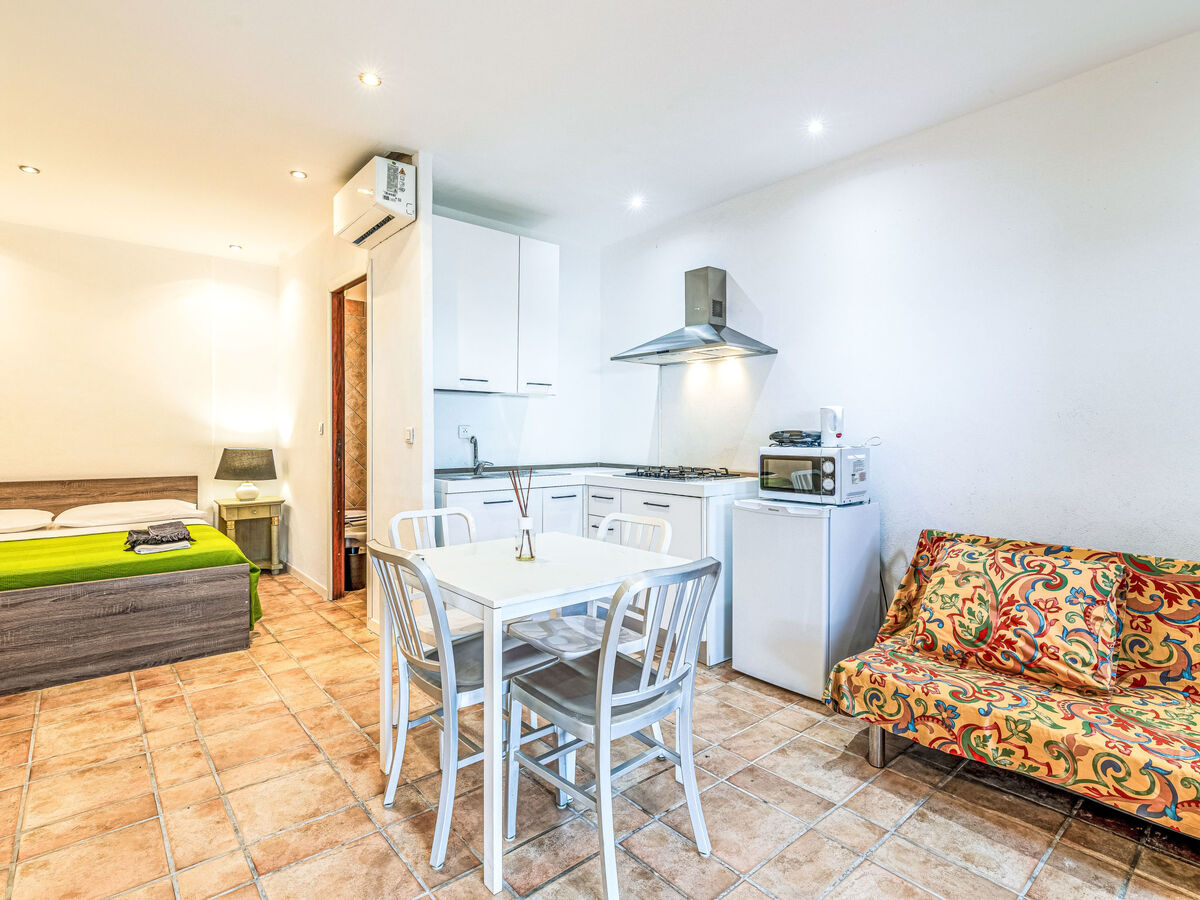 Aménagement fonctionnel et agréable: Studio avec 1 divan-lit (90 cm, longueur 190 cm), 1 grand-lit (160 cm, longueur 190 cm), table pour les repas.