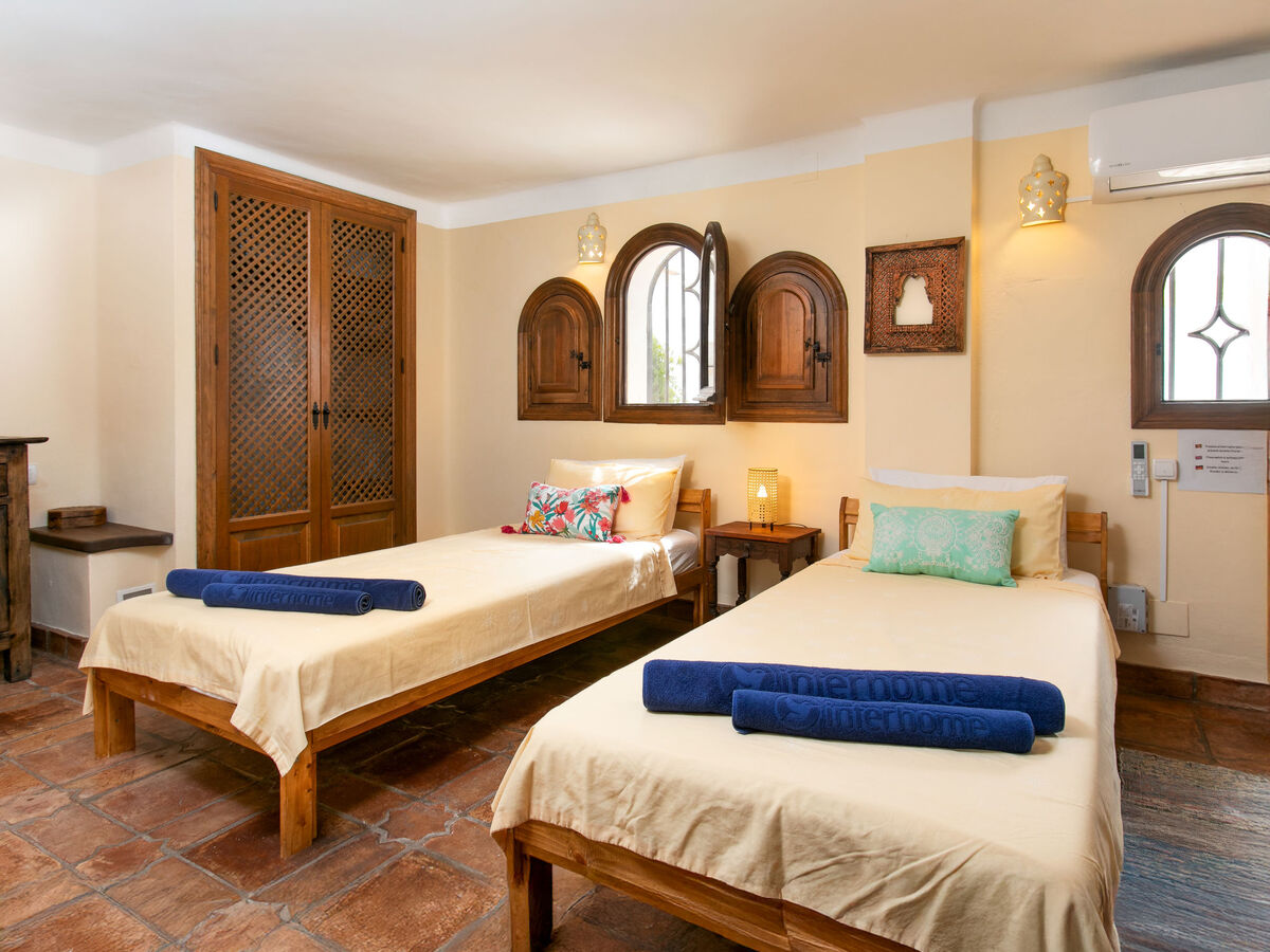 1 chambre avec 2 lits (90 cm, longueur 200 cm), bain/WC, air-conditionné et chauffage à air chaud.