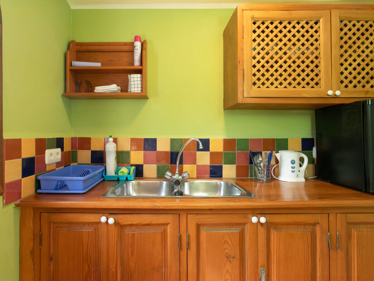 Petite cuisine ouverte (bouilloire électrique, micro-ondes, cafetière électrique).