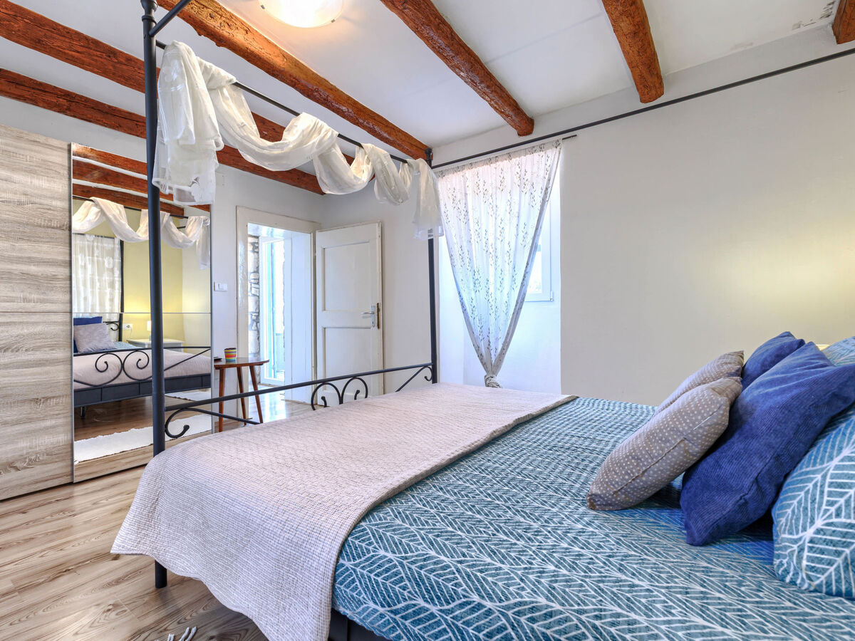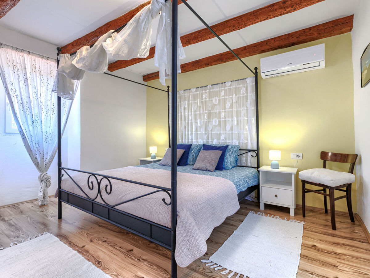 À l'étage supérieur: 1 chambre avec 1 grand-lit (200 cm, longueur 200 cm), air-conditionné.