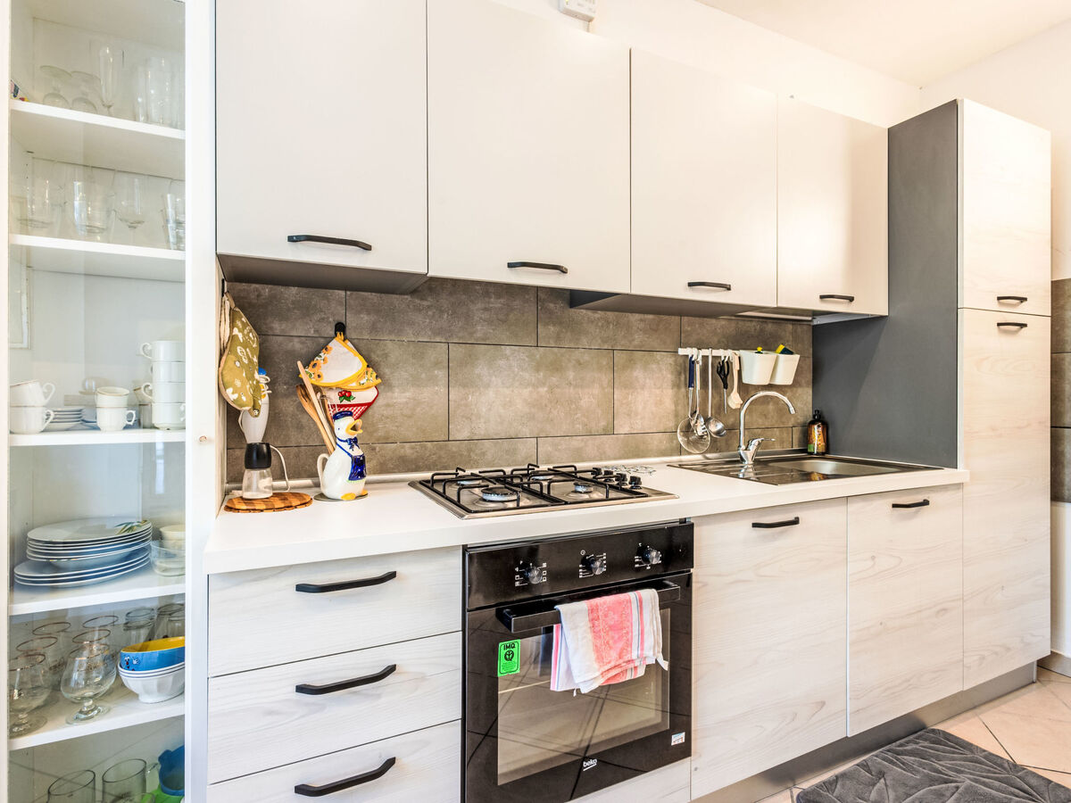 Cuisine (4 plaques de cuisson, four, lave-vaisselle, bouilloire électrique, micro-ondes, cafetière électrique) avec table pour les repas.