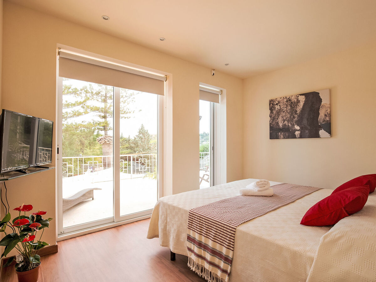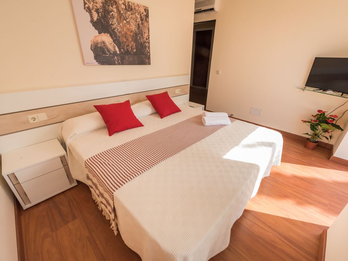 1 grande chambre double avec baie vitrée avec 1 grand-lit (150 cm), douche/WC, air-conditionné et chauffage à air chaud.