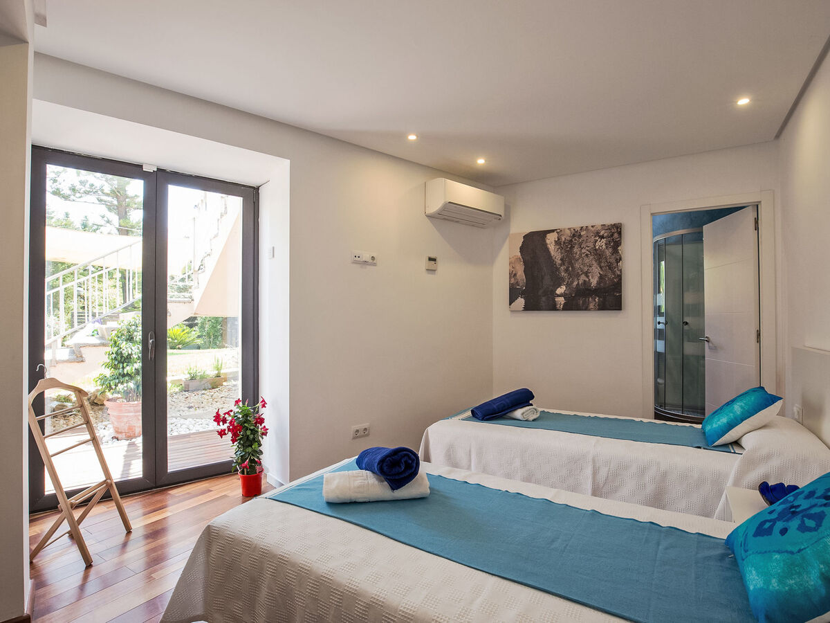 1 grande chambre double avec baie vitrée avec 2 lits (90 cm), air-conditionné et chauffage à air chaud.