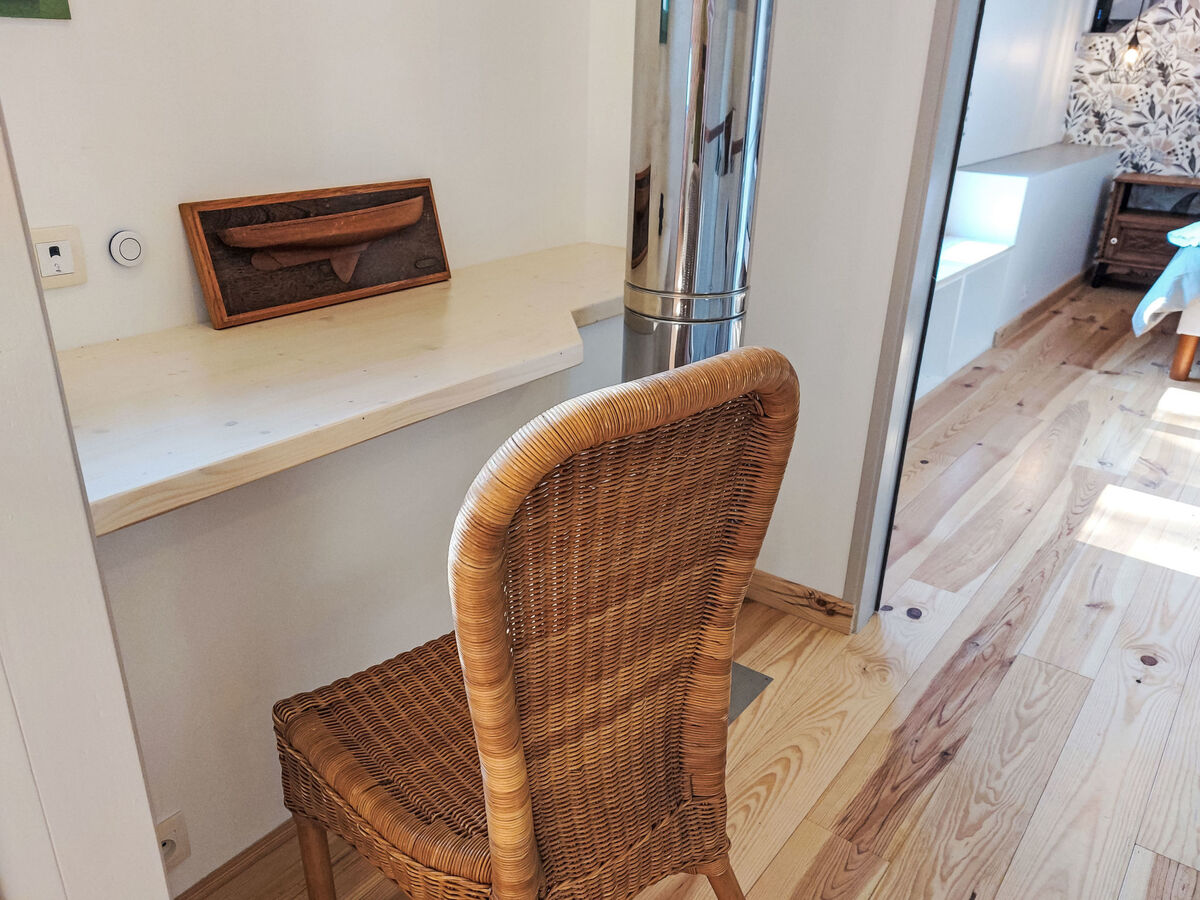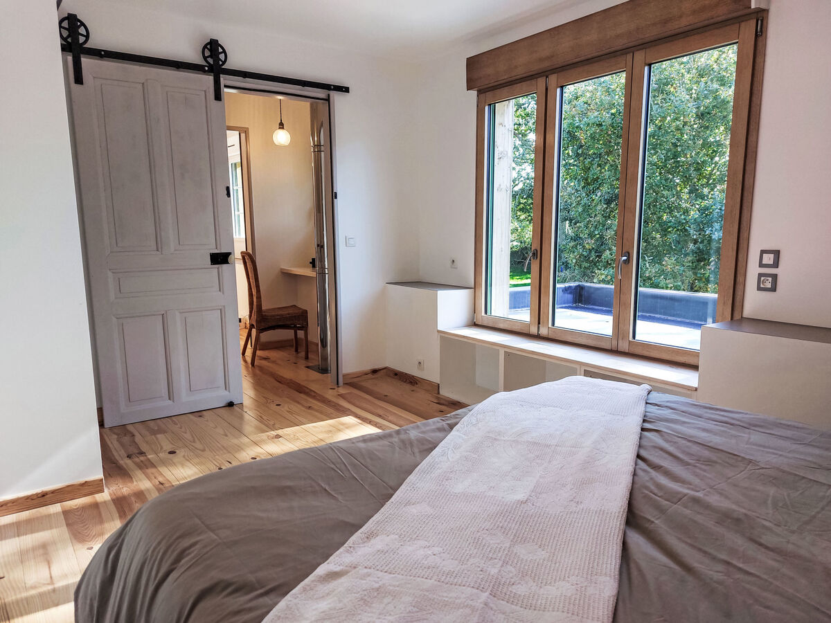 Clair, complètement rénovée en 2025, aménagement agréable et plaisant: séjour/salle à manger 30 m2, ouvert avec TV, écran plat et poêle à bois.