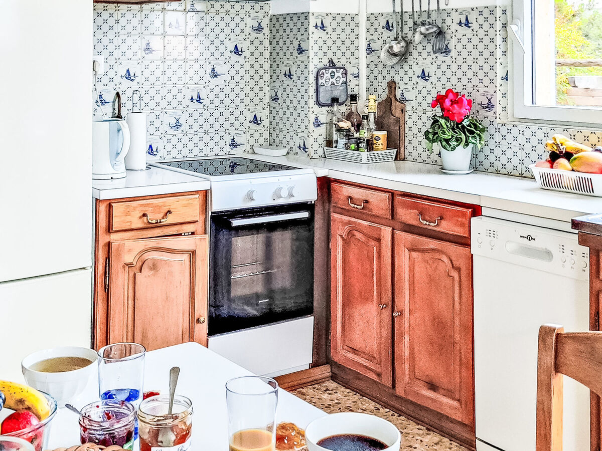 Cuisine (four, lave-vaisselle, 3 plaques à induction, grille-pain, bouilloire électrique, micro-ondes, congélateur, cafetière électrique).