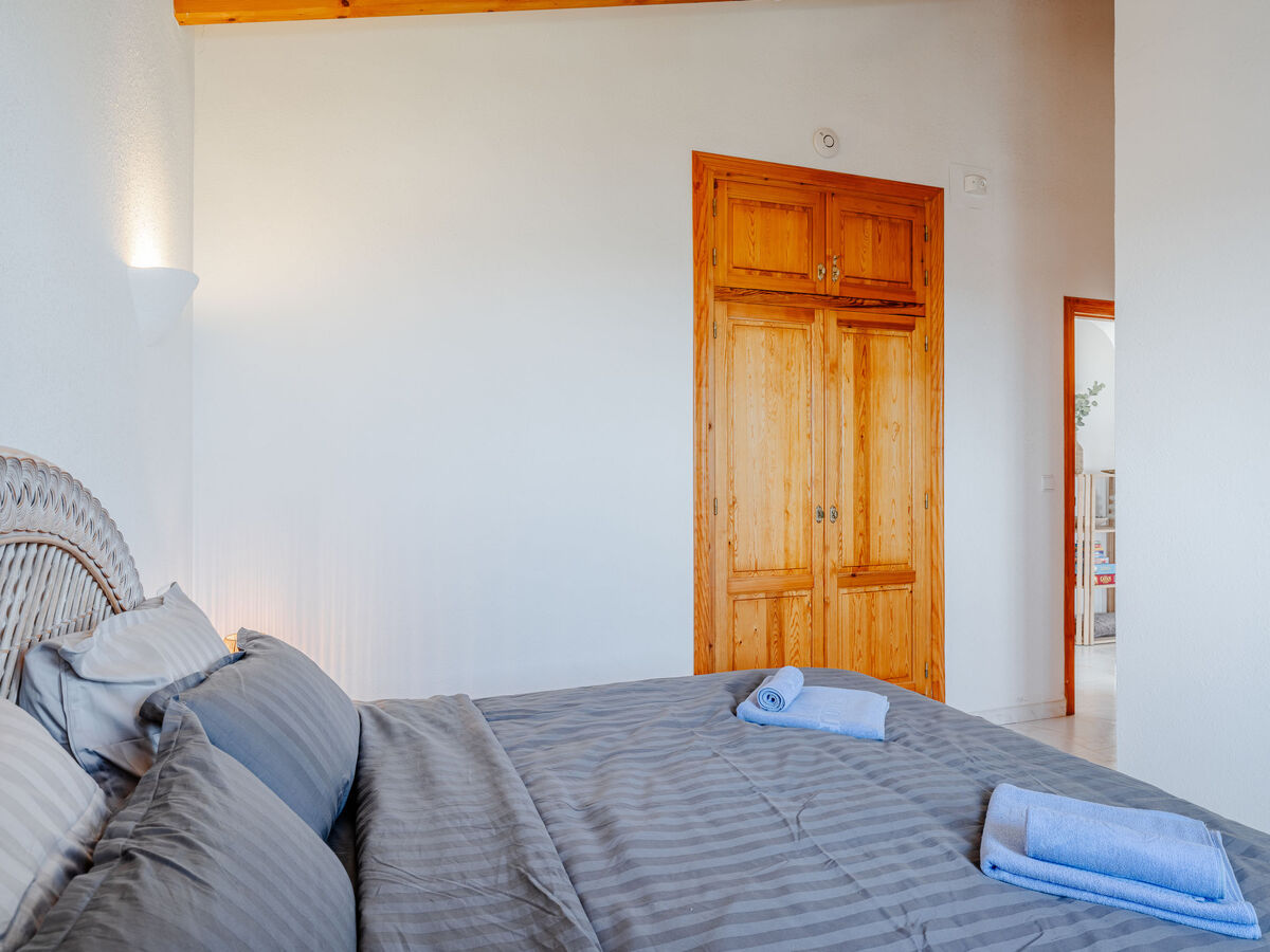 1 chambre avec 1 grand-lit (180 cm, longueur 200 cm), douche/WC et ventilateur.