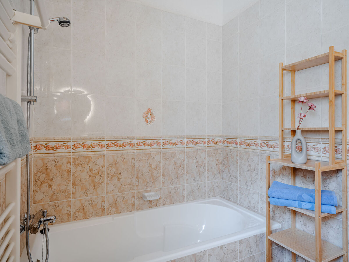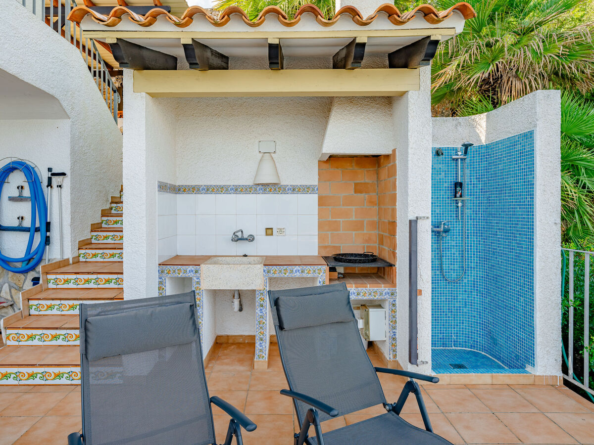 Douche extérieure, meubles de jardin, barbecue, place de parking sur le terrain.