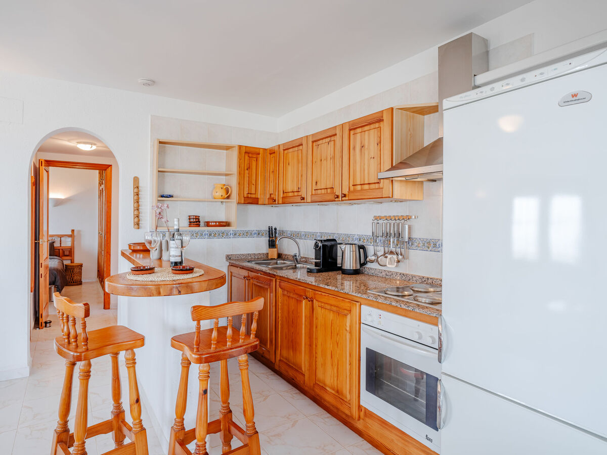Cuisine ouverte (four, lave-vaisselle, 3 plaques vitrocéramiques, grille-pain, bouilloire électrique, micro-ondes, congélateur, cafetière électrique, Capsules pour machine à café (Nespresso) (NON INCLUSES)).