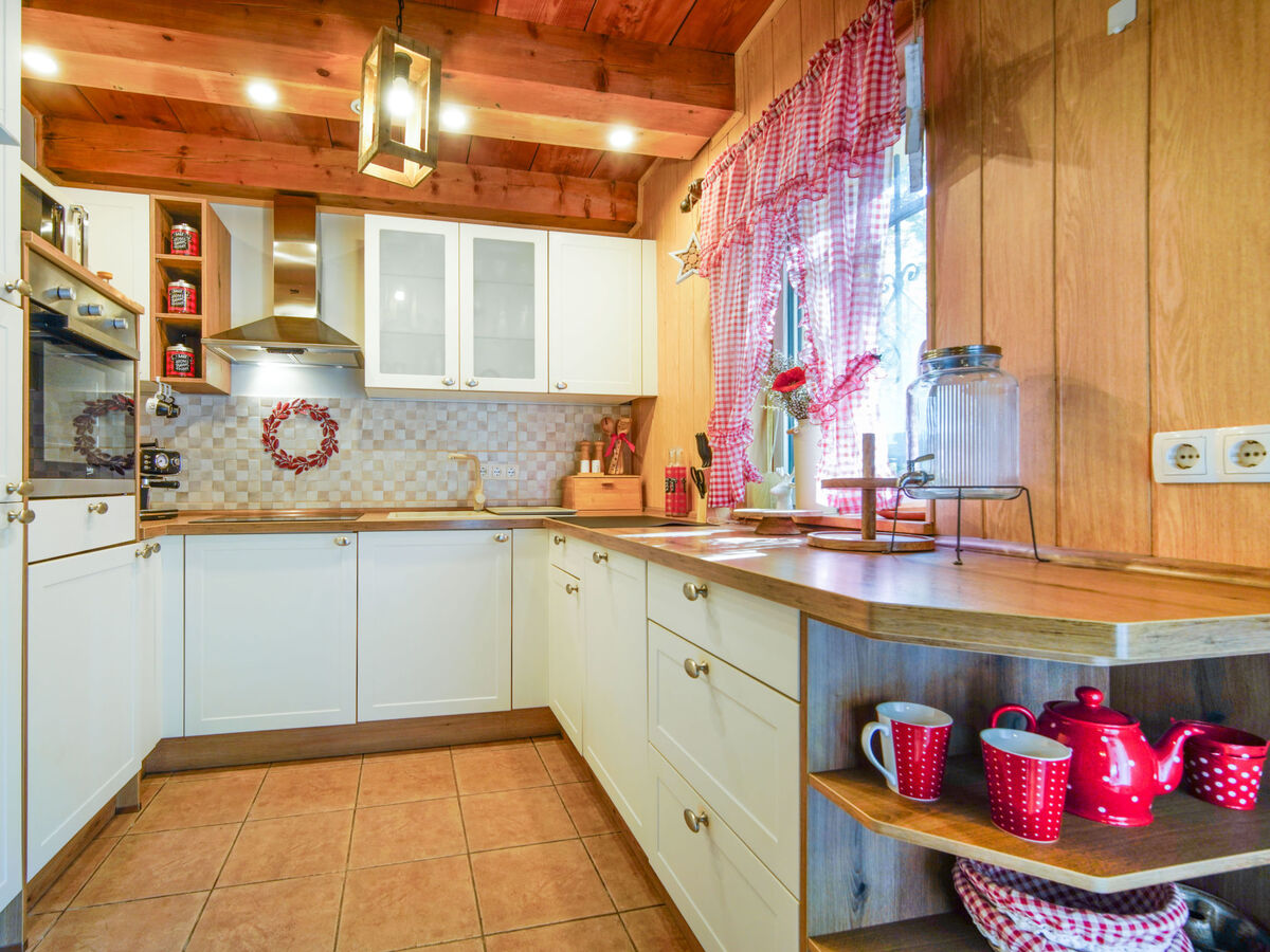 Cuisine ouverte (four, lave-vaisselle, 4 plaques vitrocéramiques, grille-pain, bouilloire électrique, micro-ondes, congélateur, cafetière électrique).