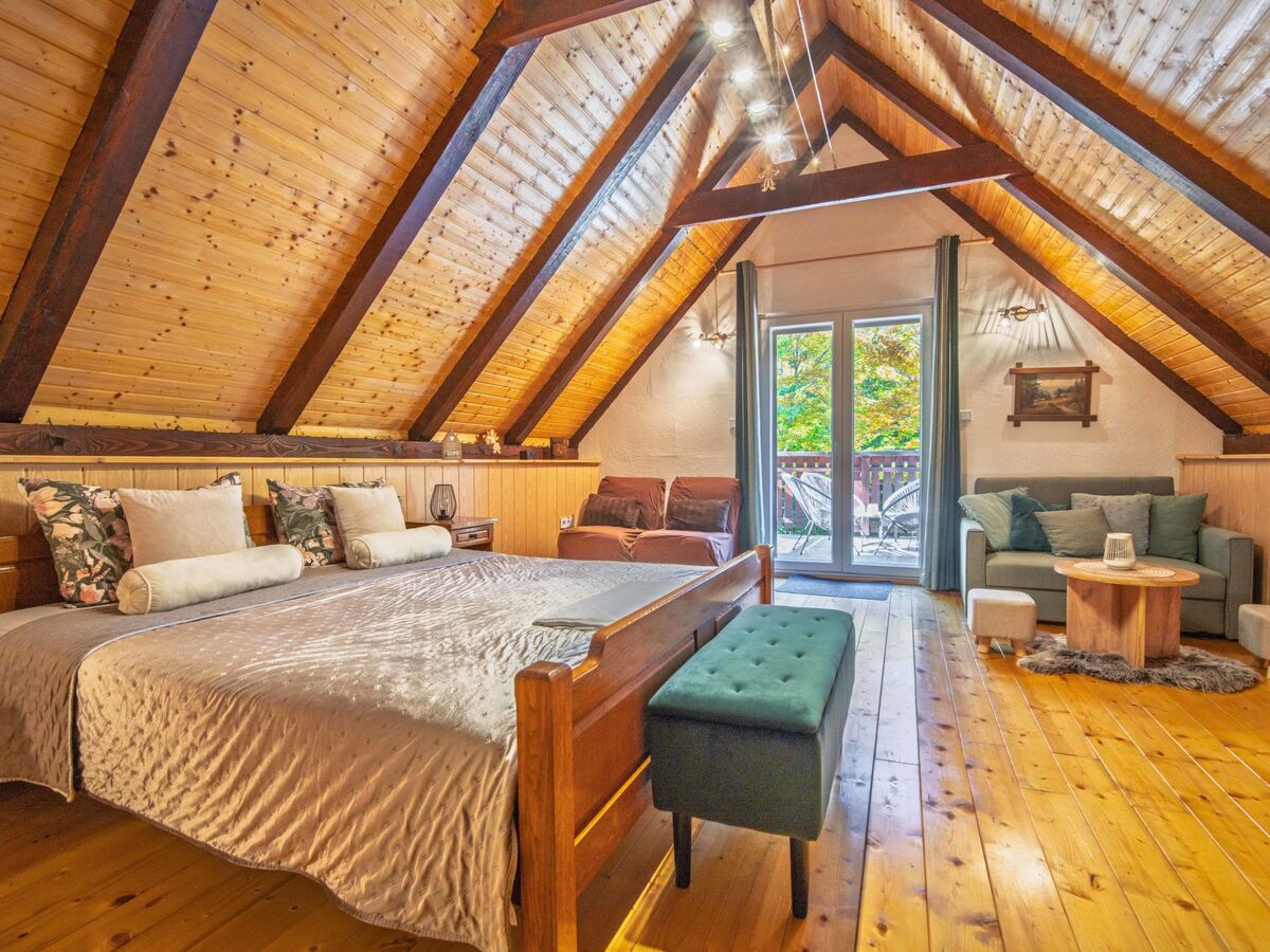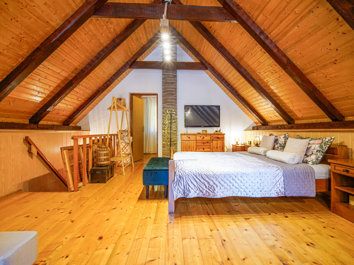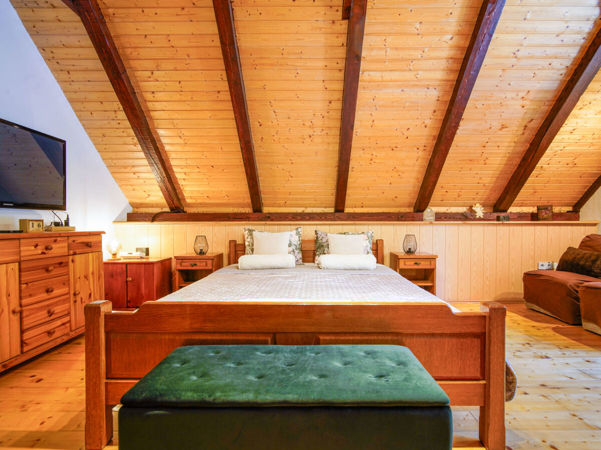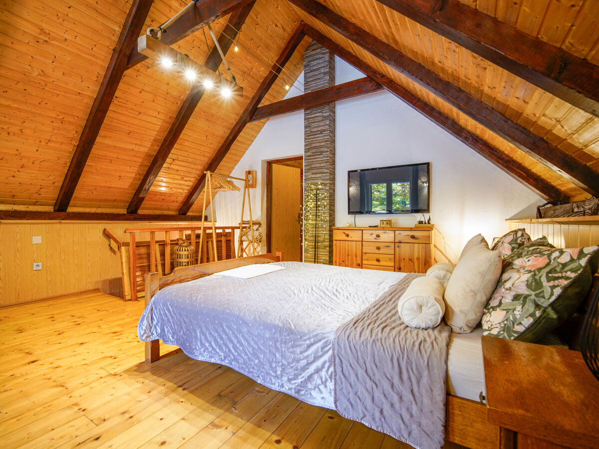 À l'étage supérieur: 1 chambre avec 1 grand-lit (160 cm, longueur 200 cm), TV (satellite).
